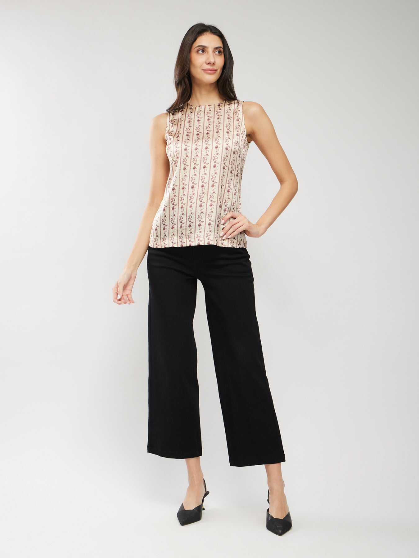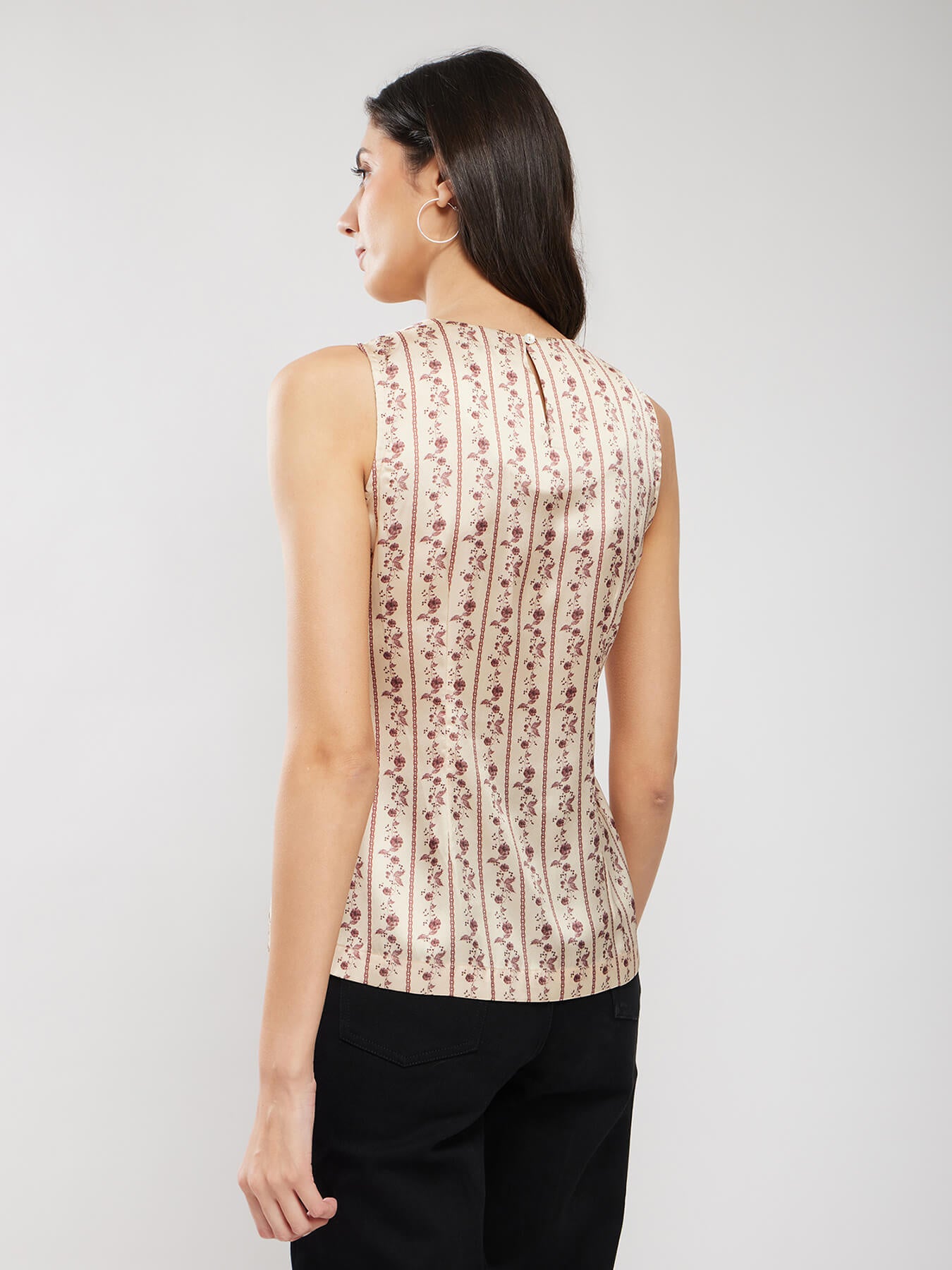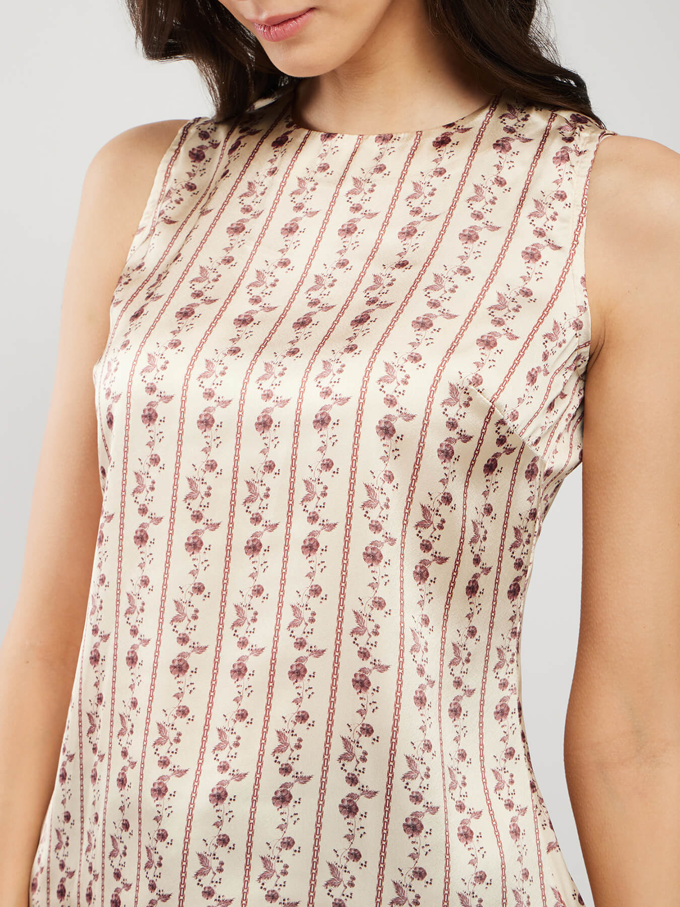 Satin Floral Print Top - Beige
