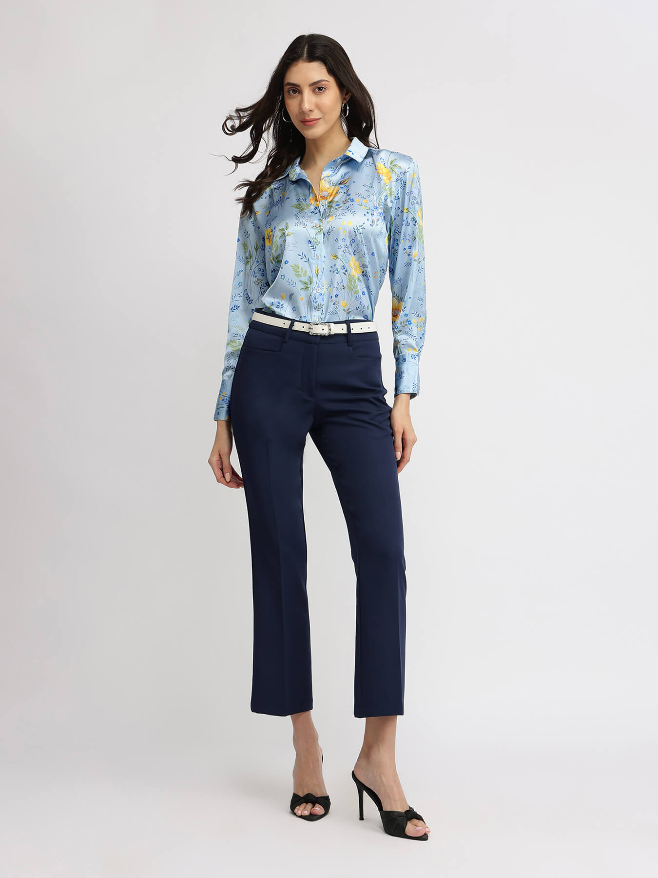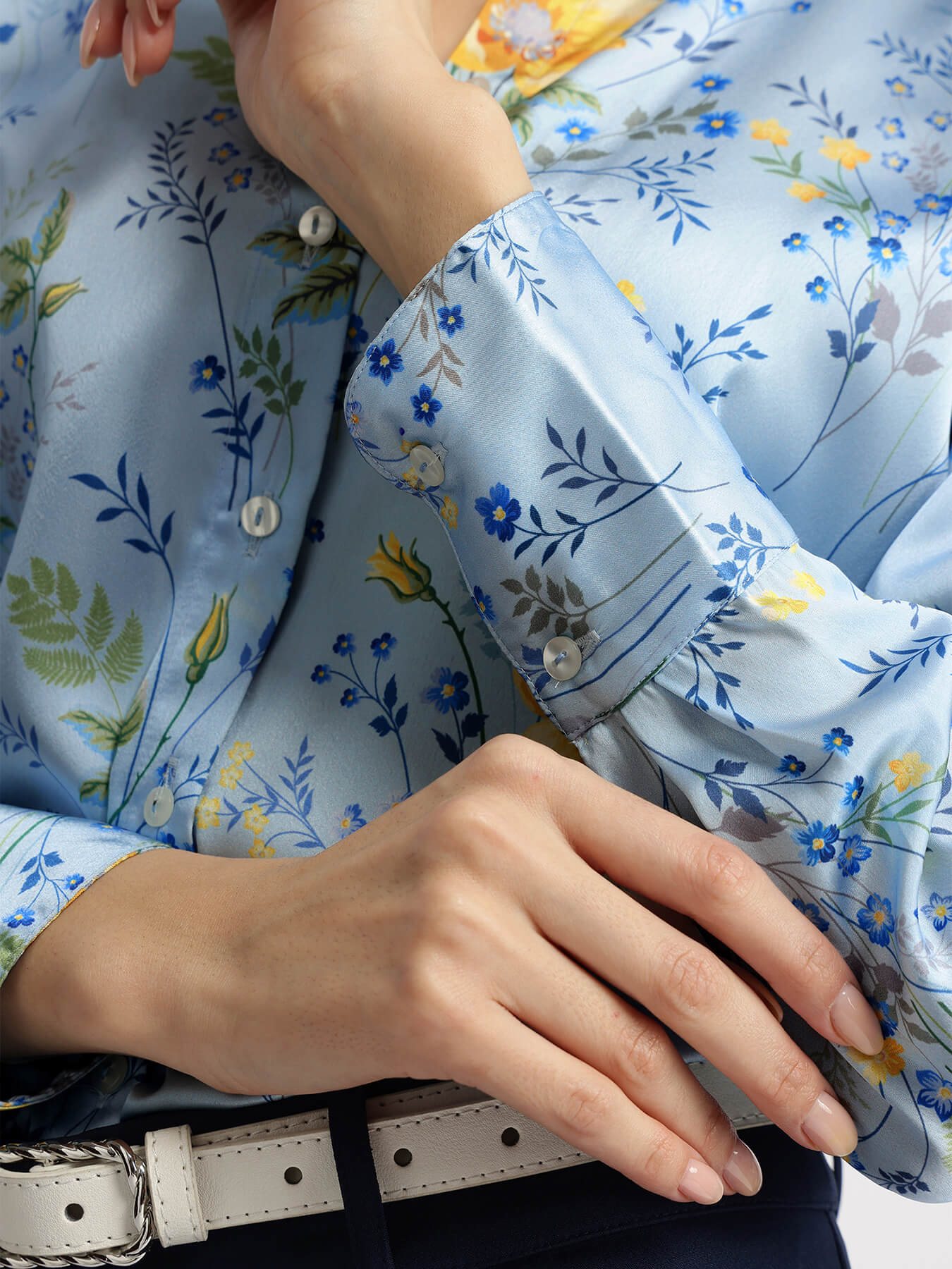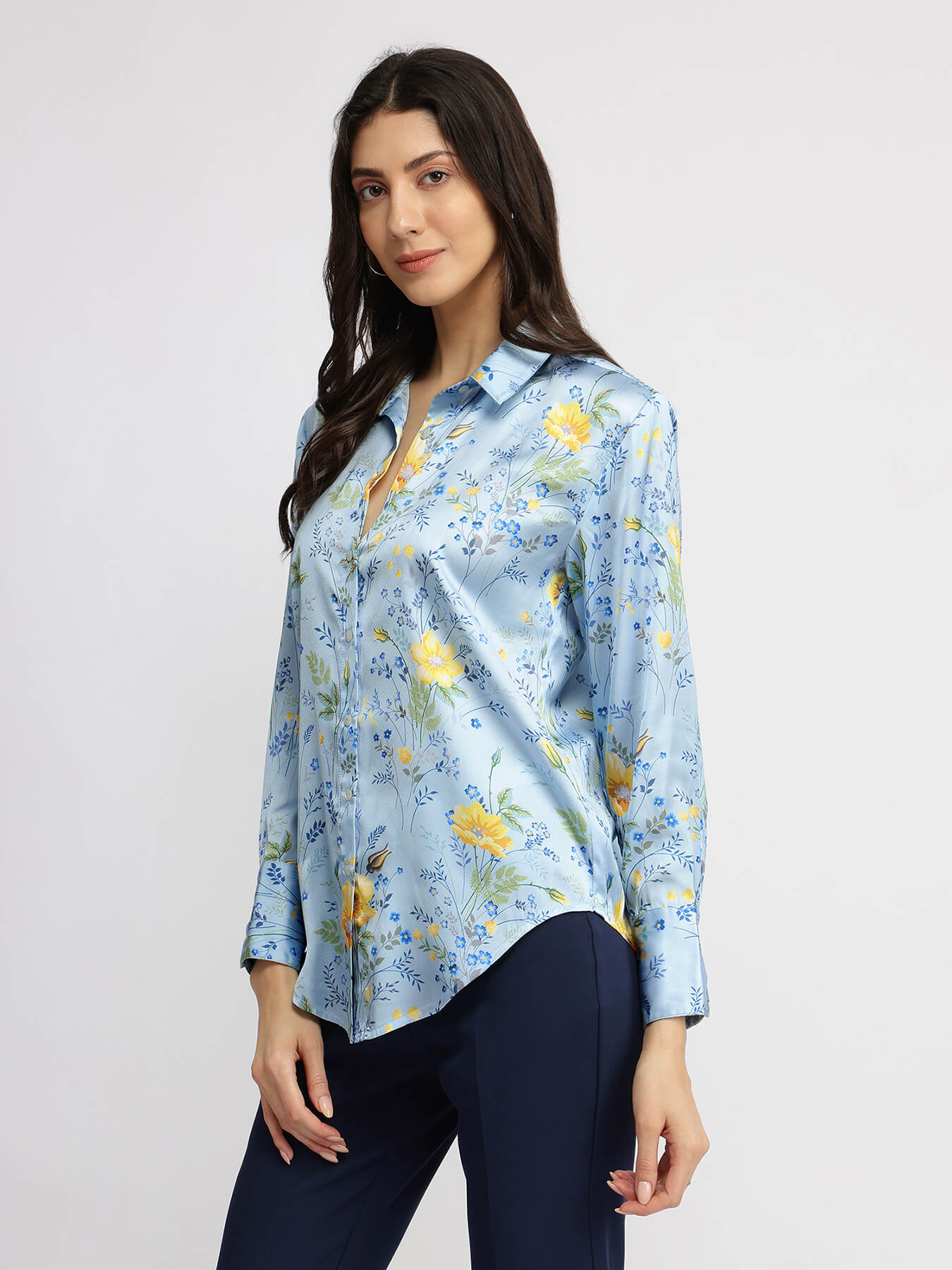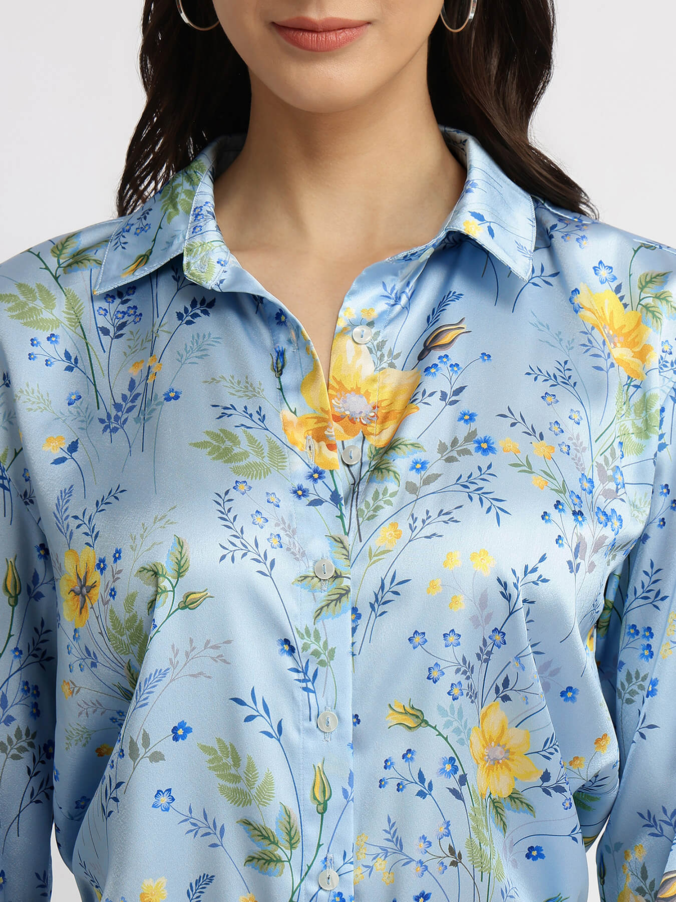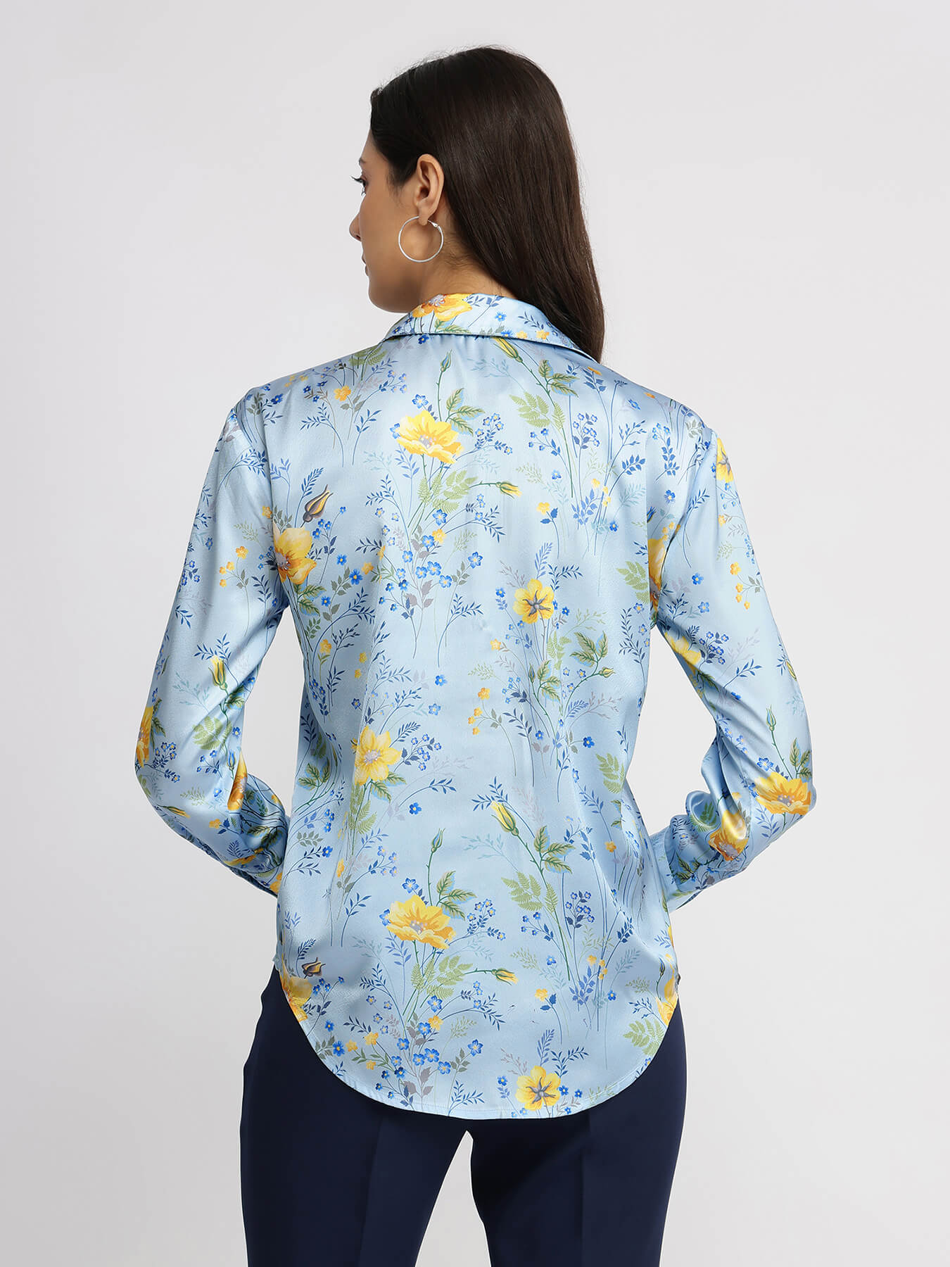 Satin Floral Shirt - Blue