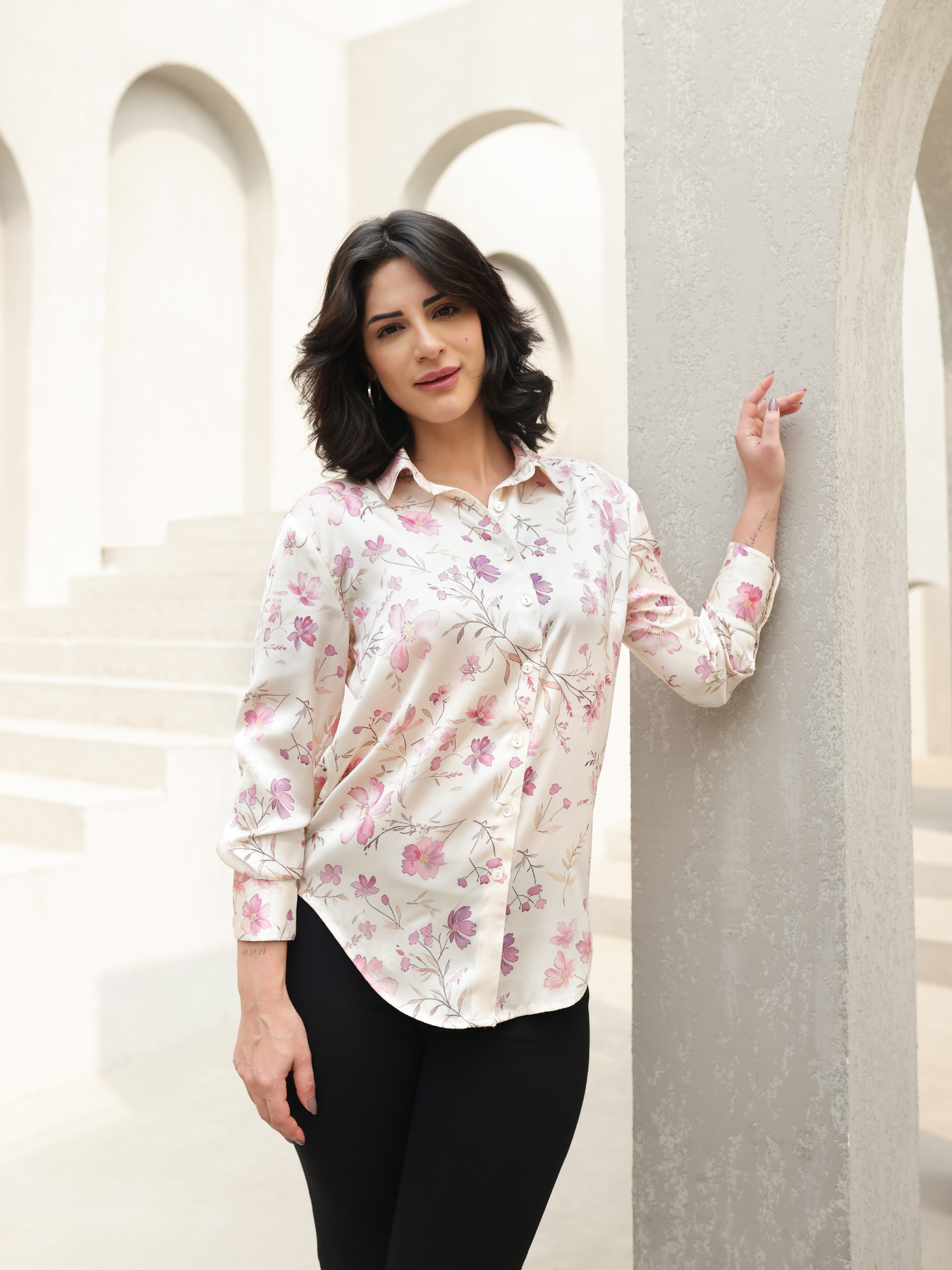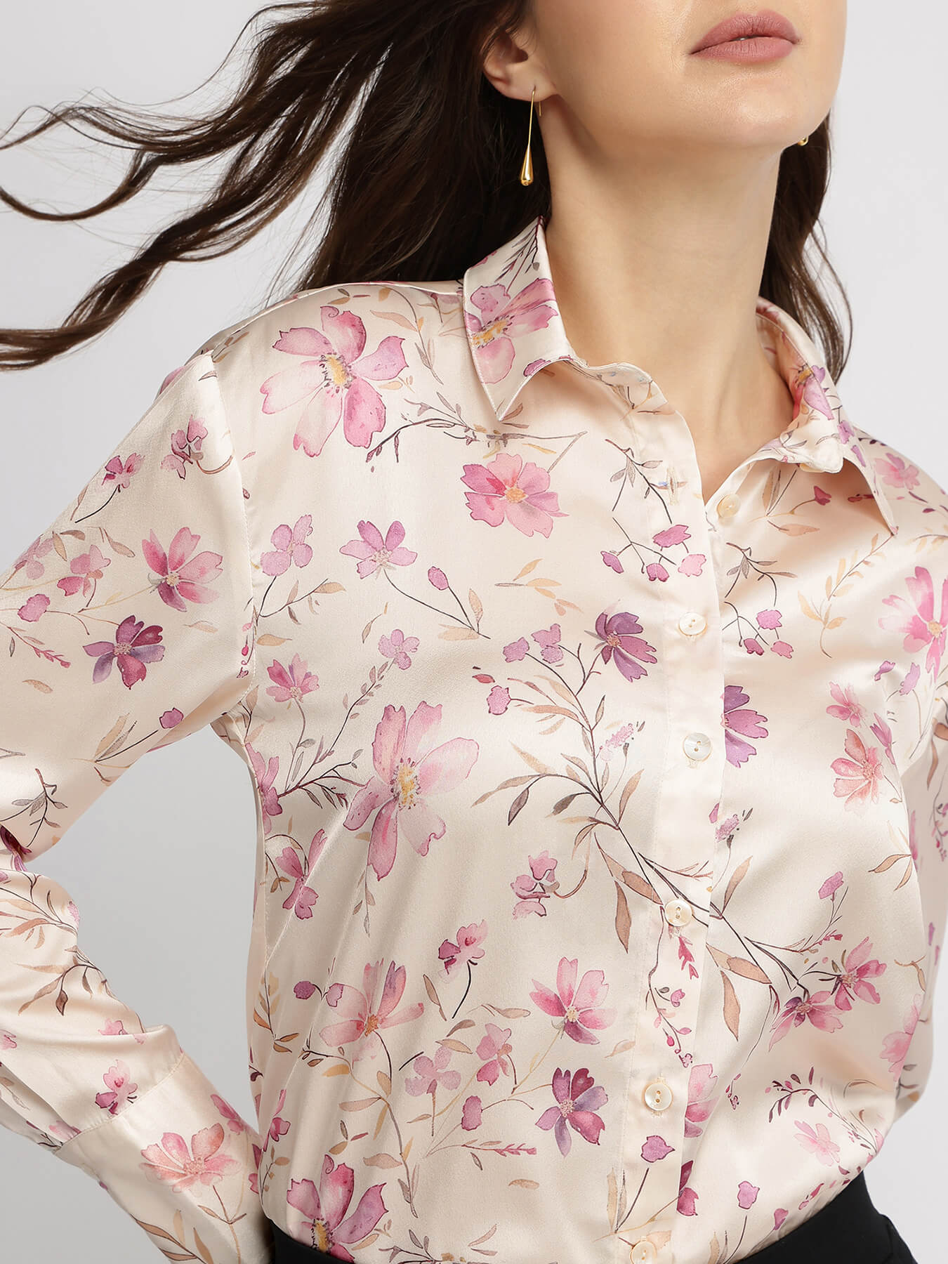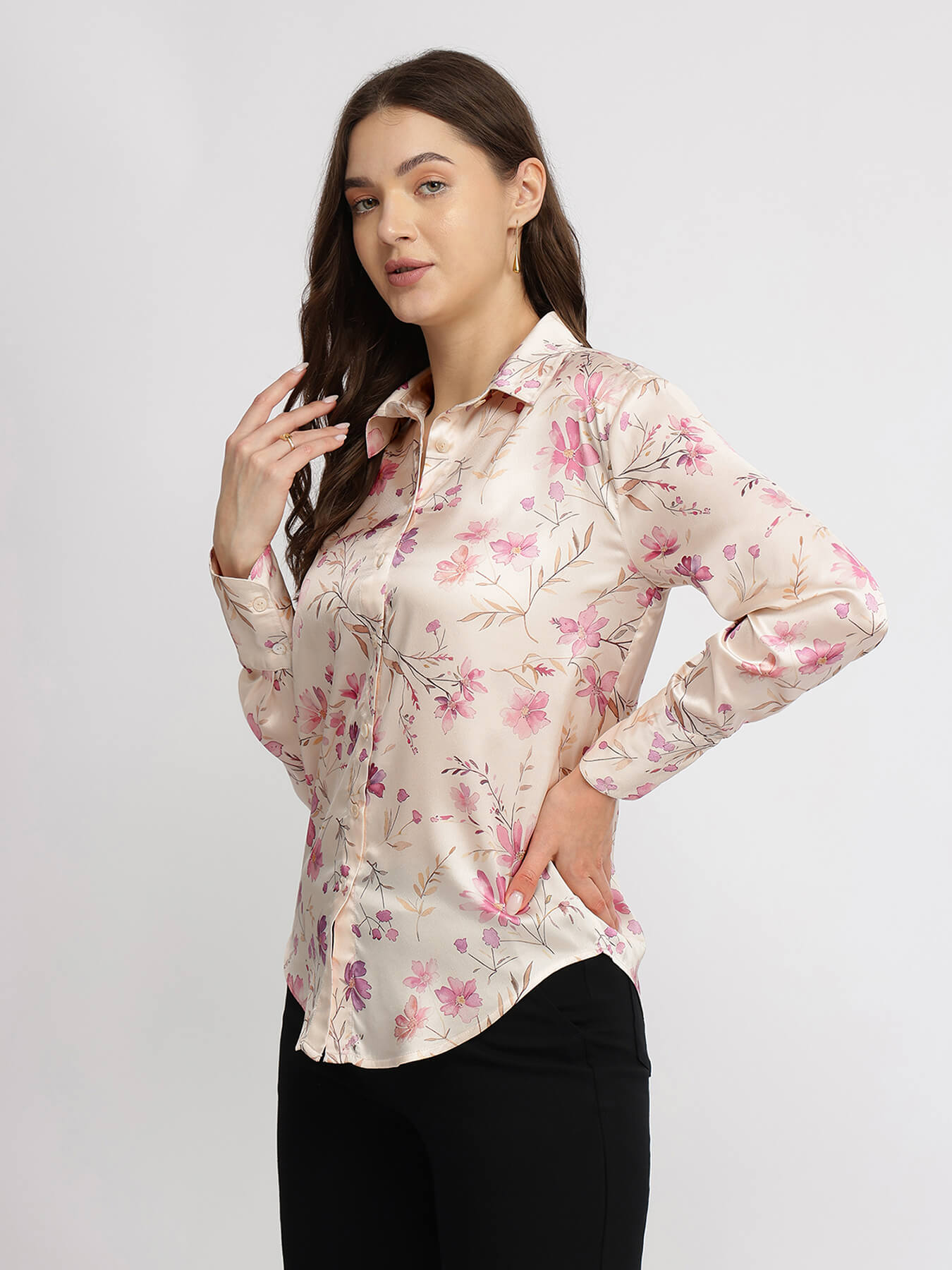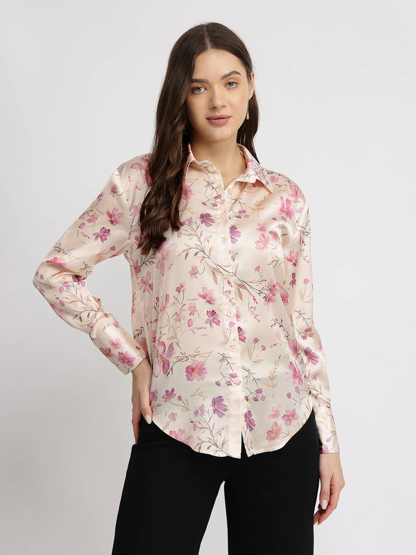Satin Floral Shirt - Pink