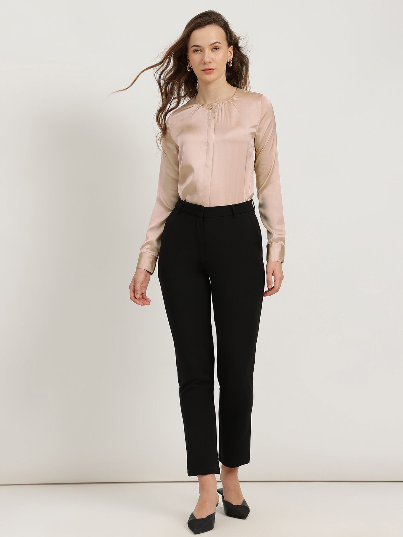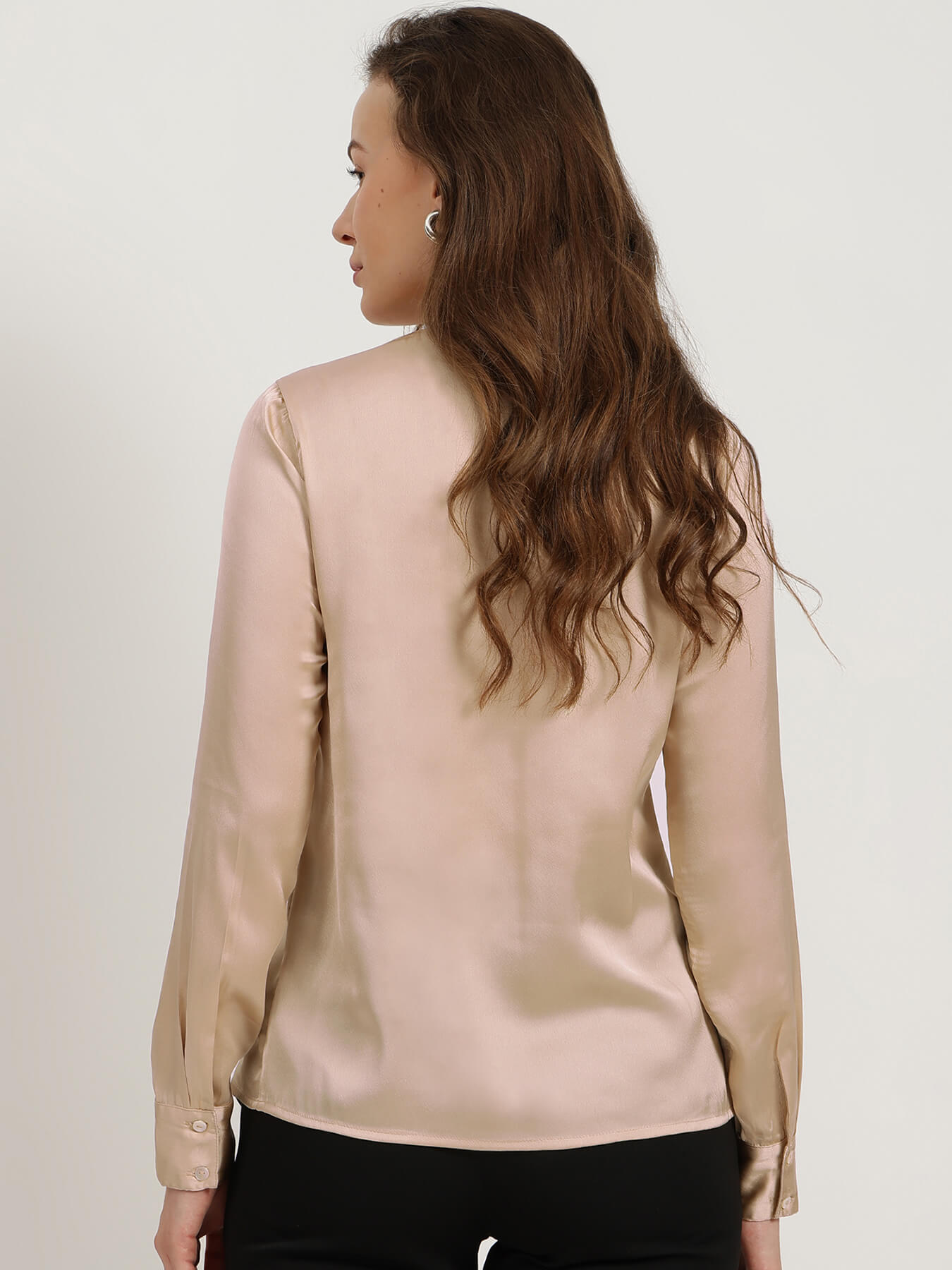 Satin Gathered Neck Shirt - Beige
