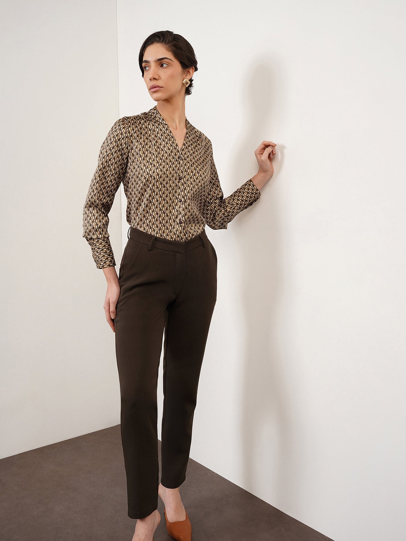 Satin Geometric Print Shirt - Olive