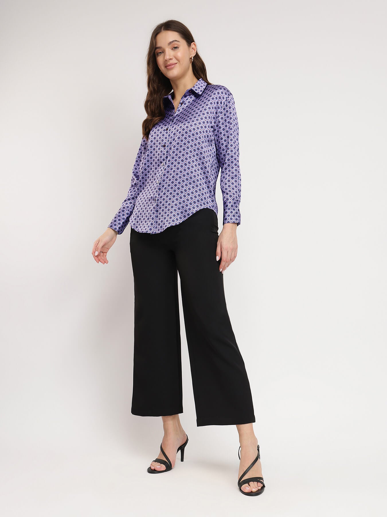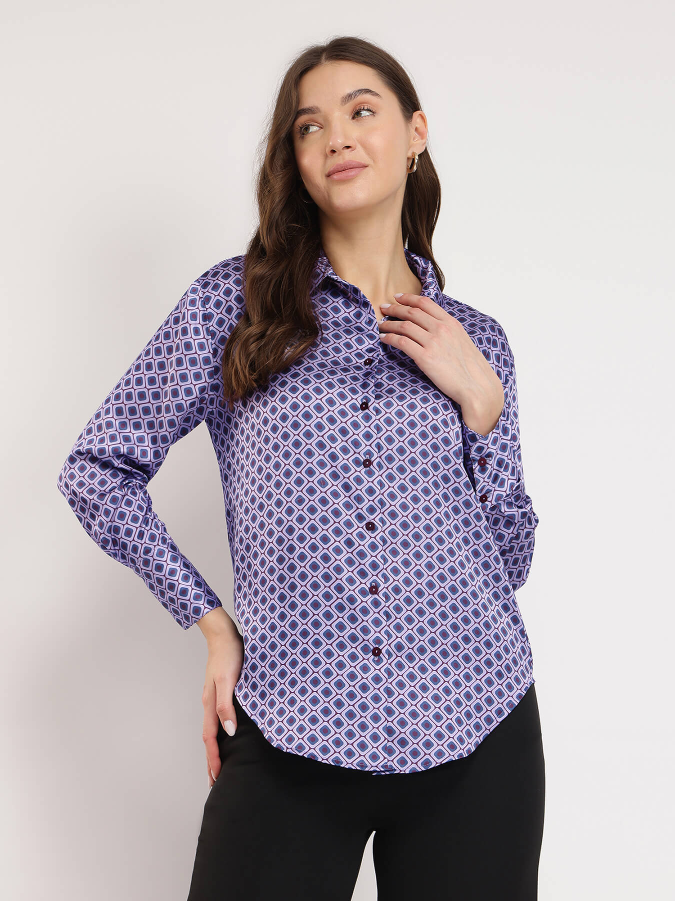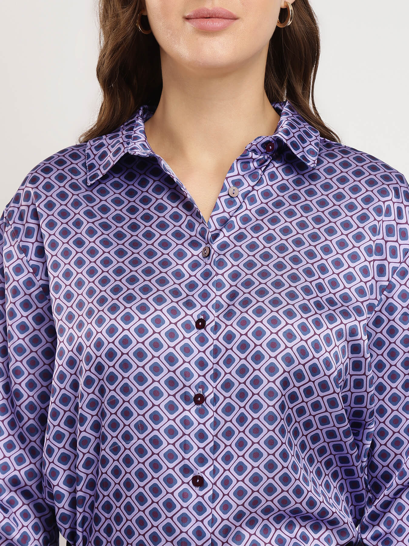 Satin Geometric Shirt - Violet