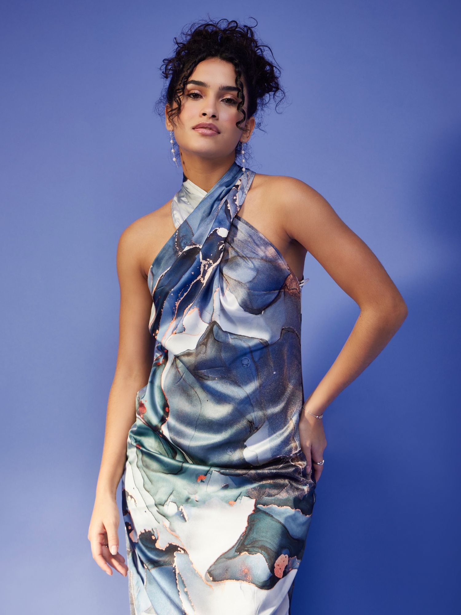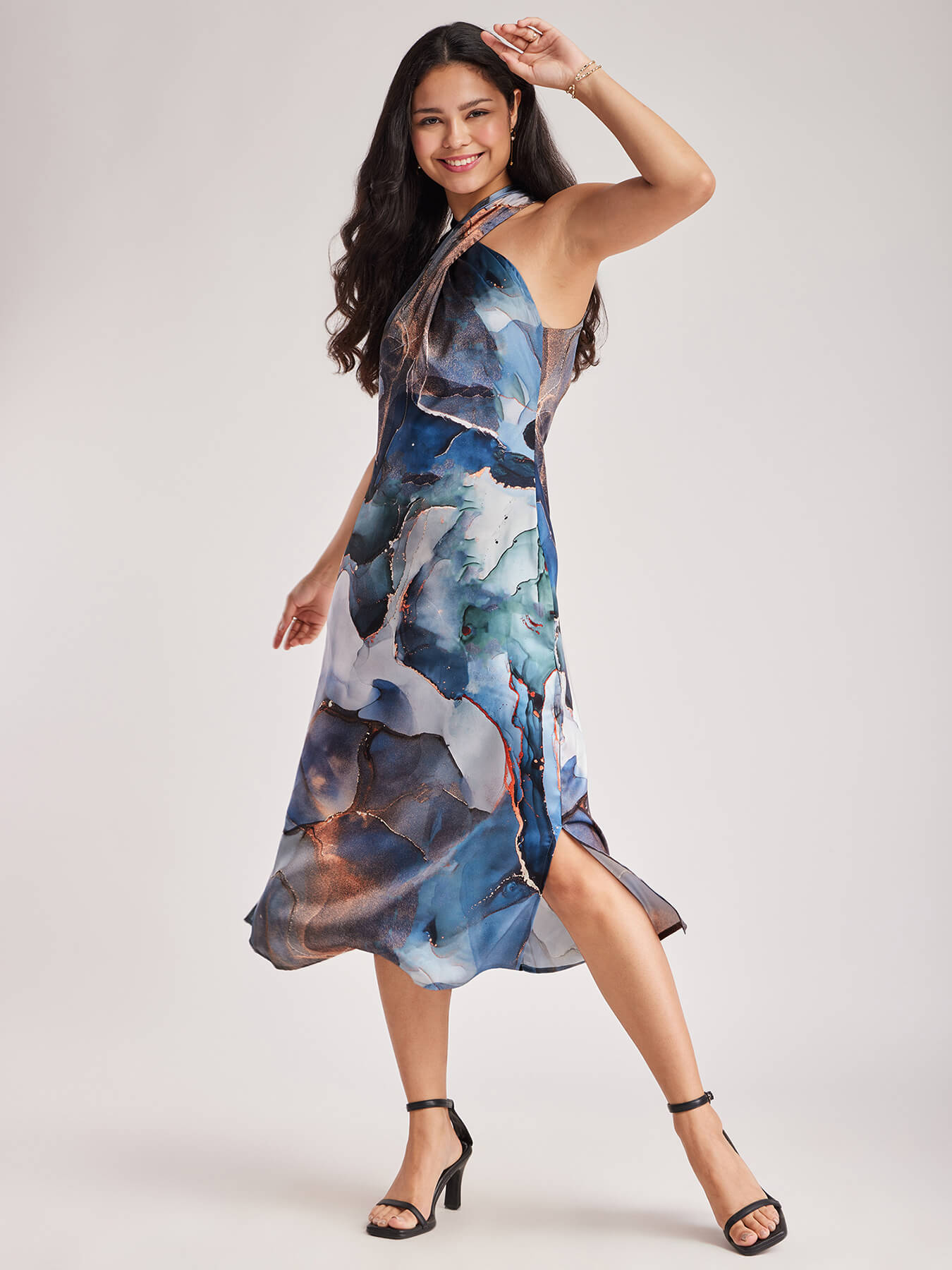 Satin Marble Print Dress - Blue