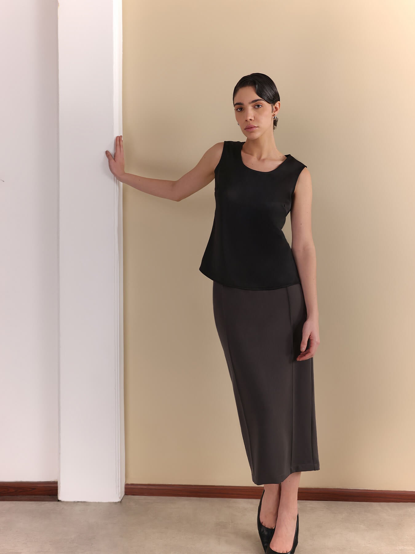 Satin Scoop Neck Camisole - Black
