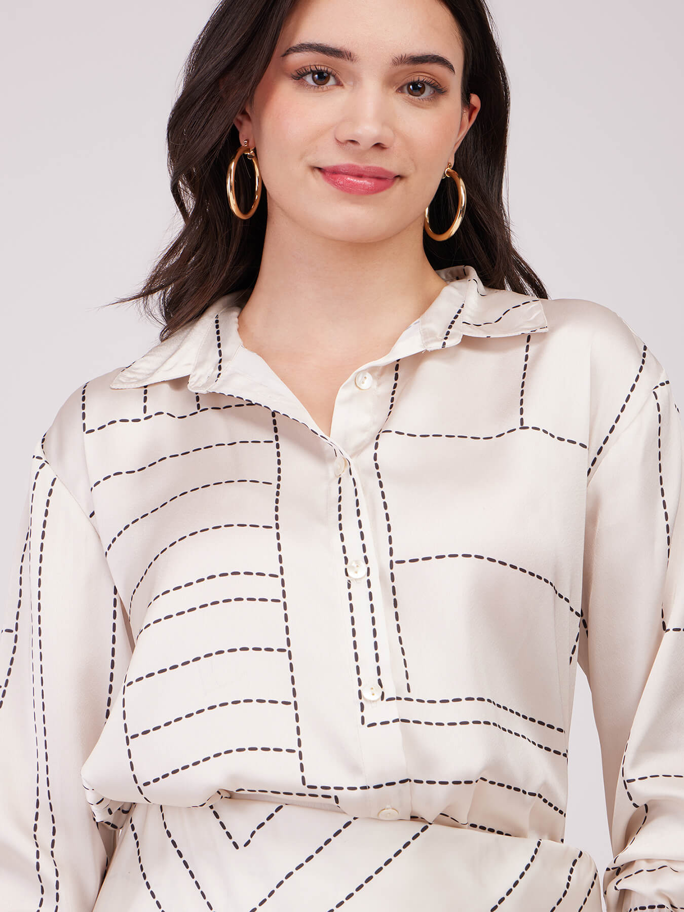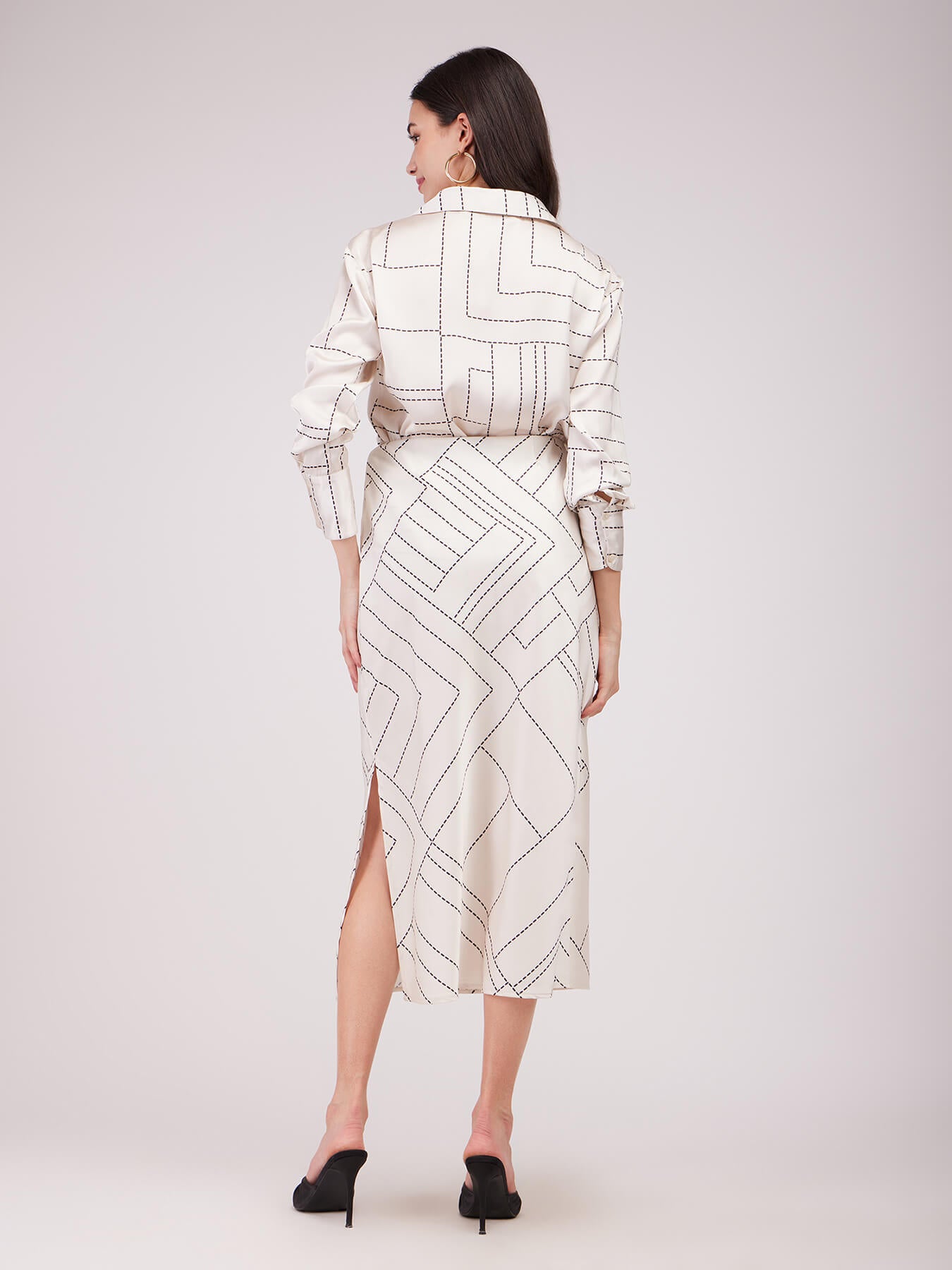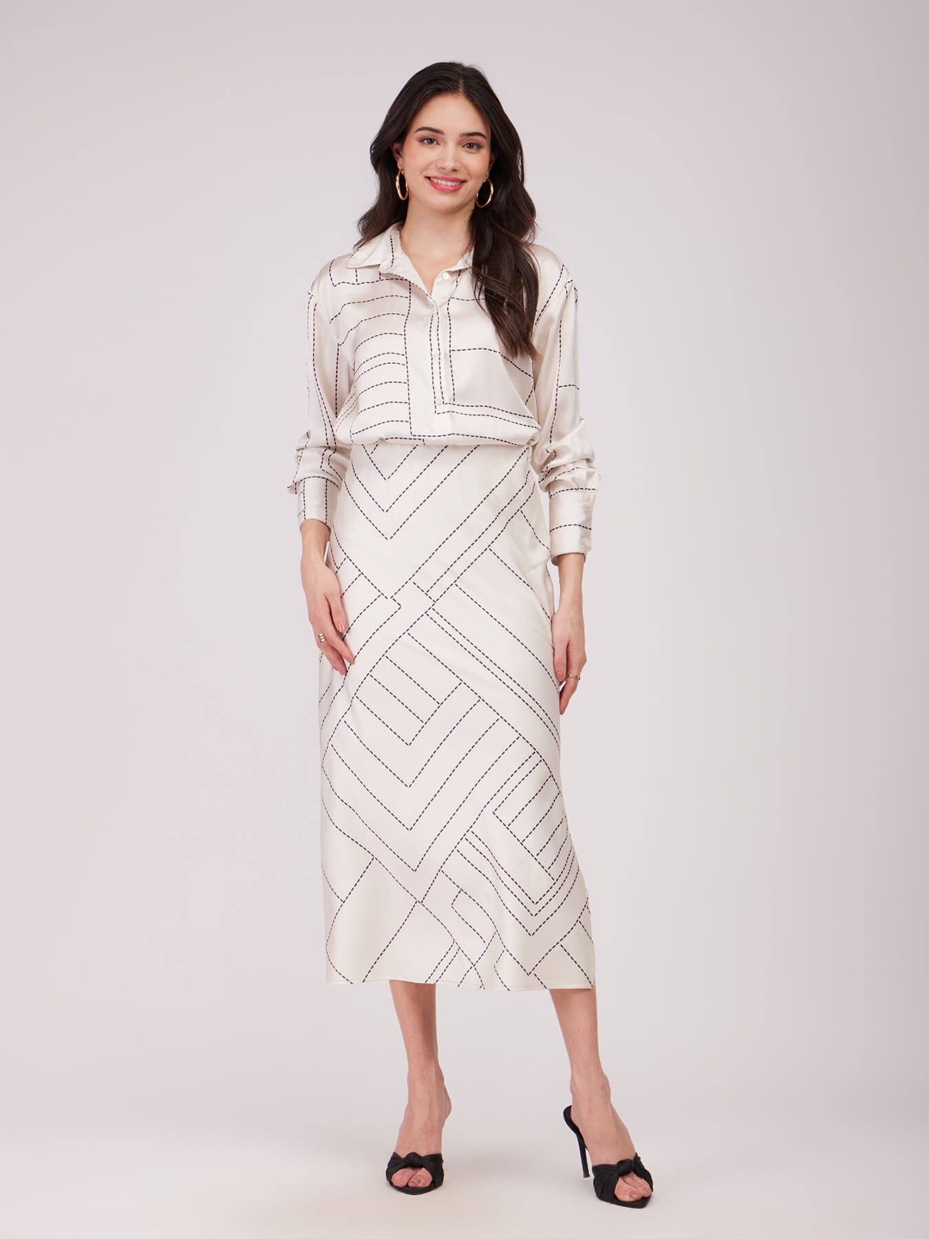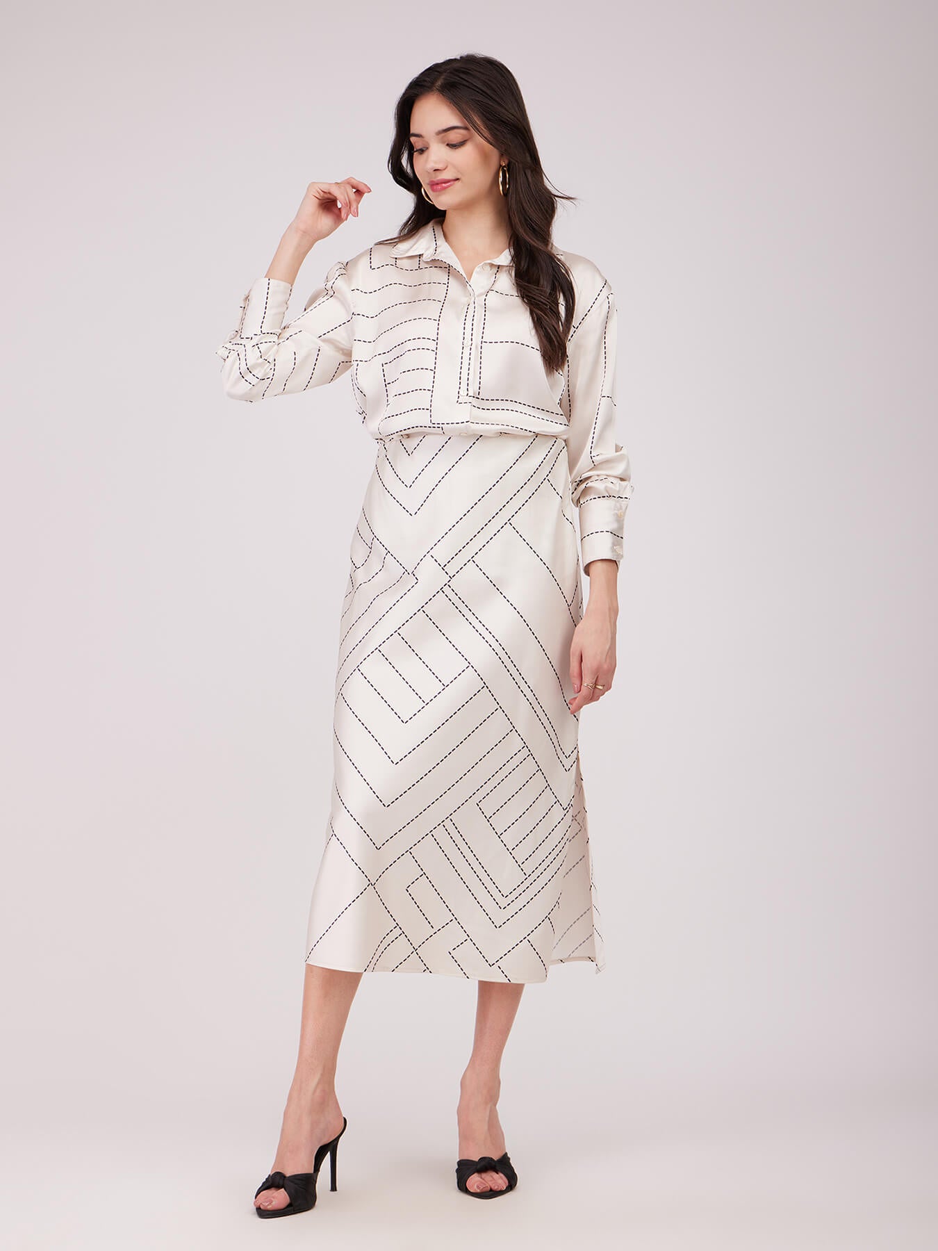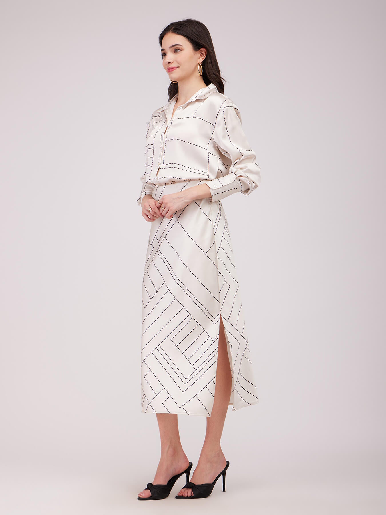 Satin Shirt And Skirt Co-ord Set - Off White And Black