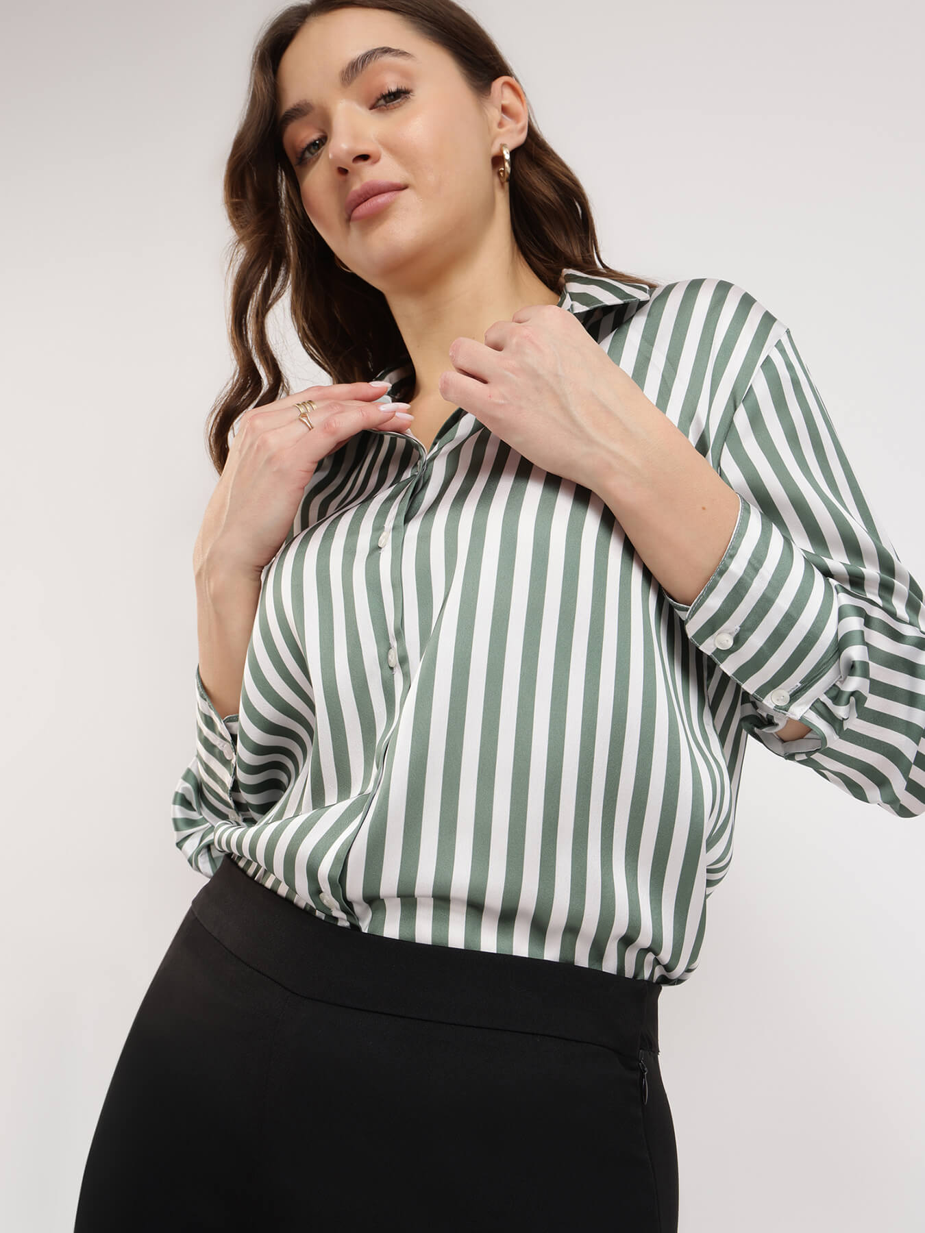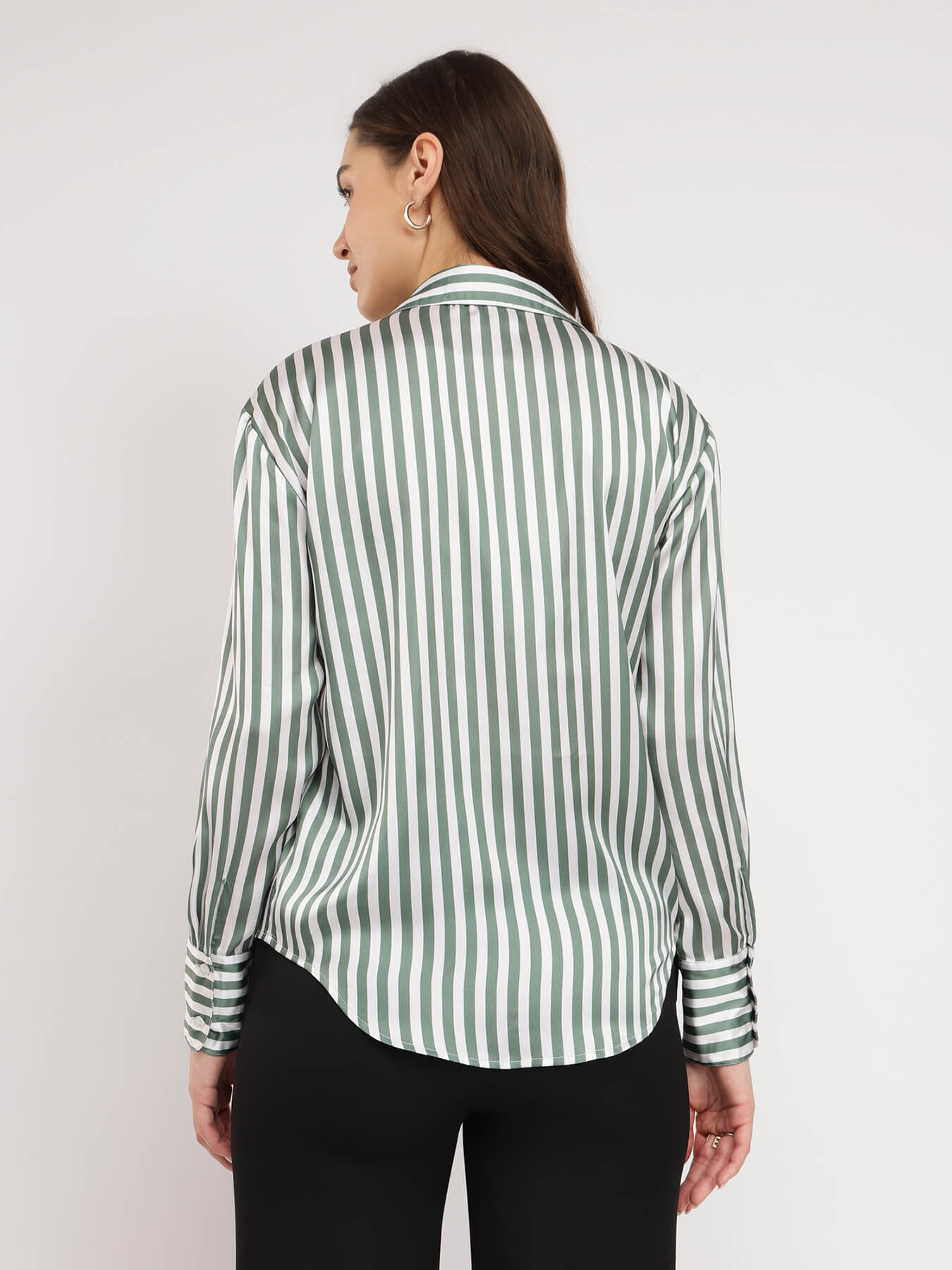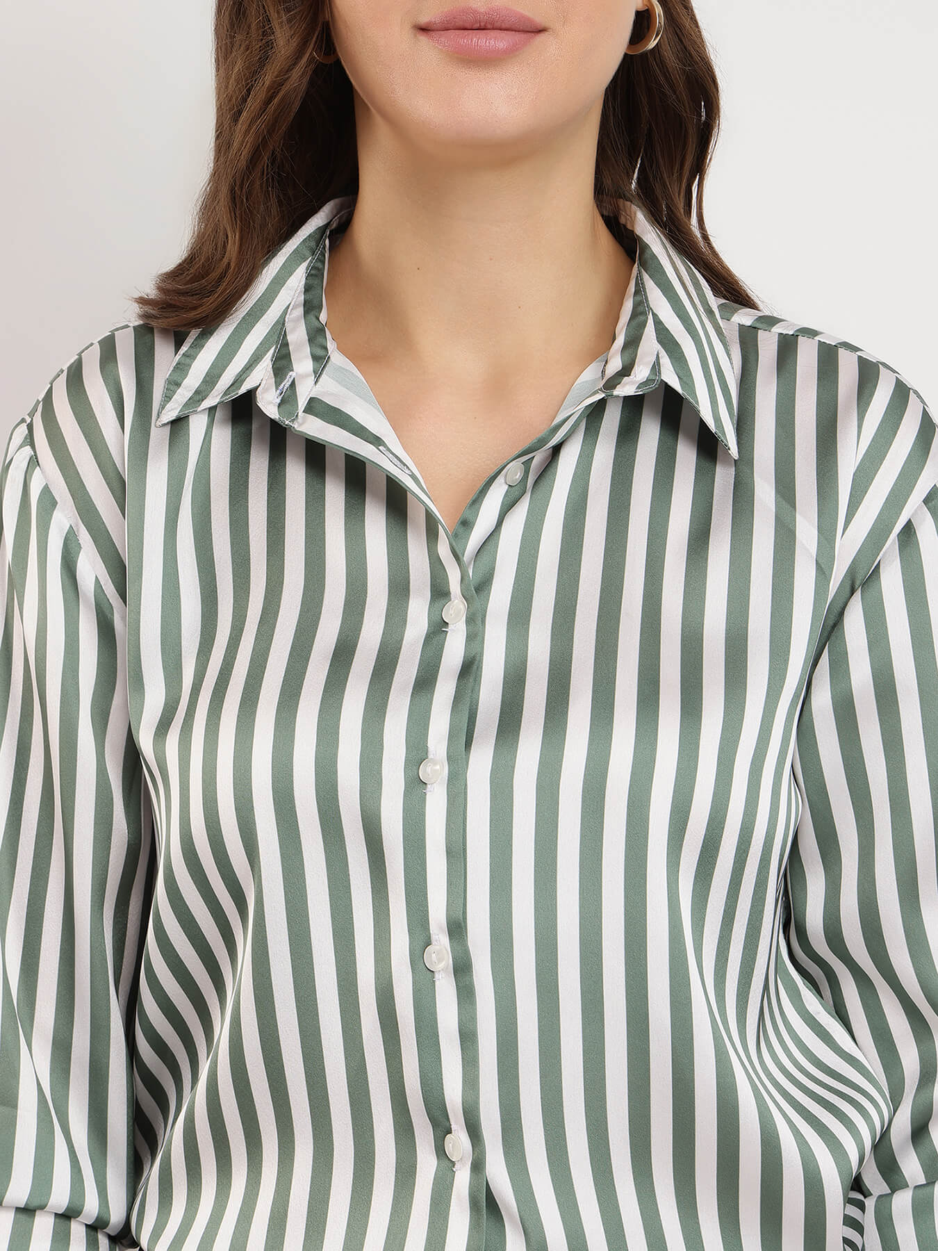 Satin Striped Shirt - Olive