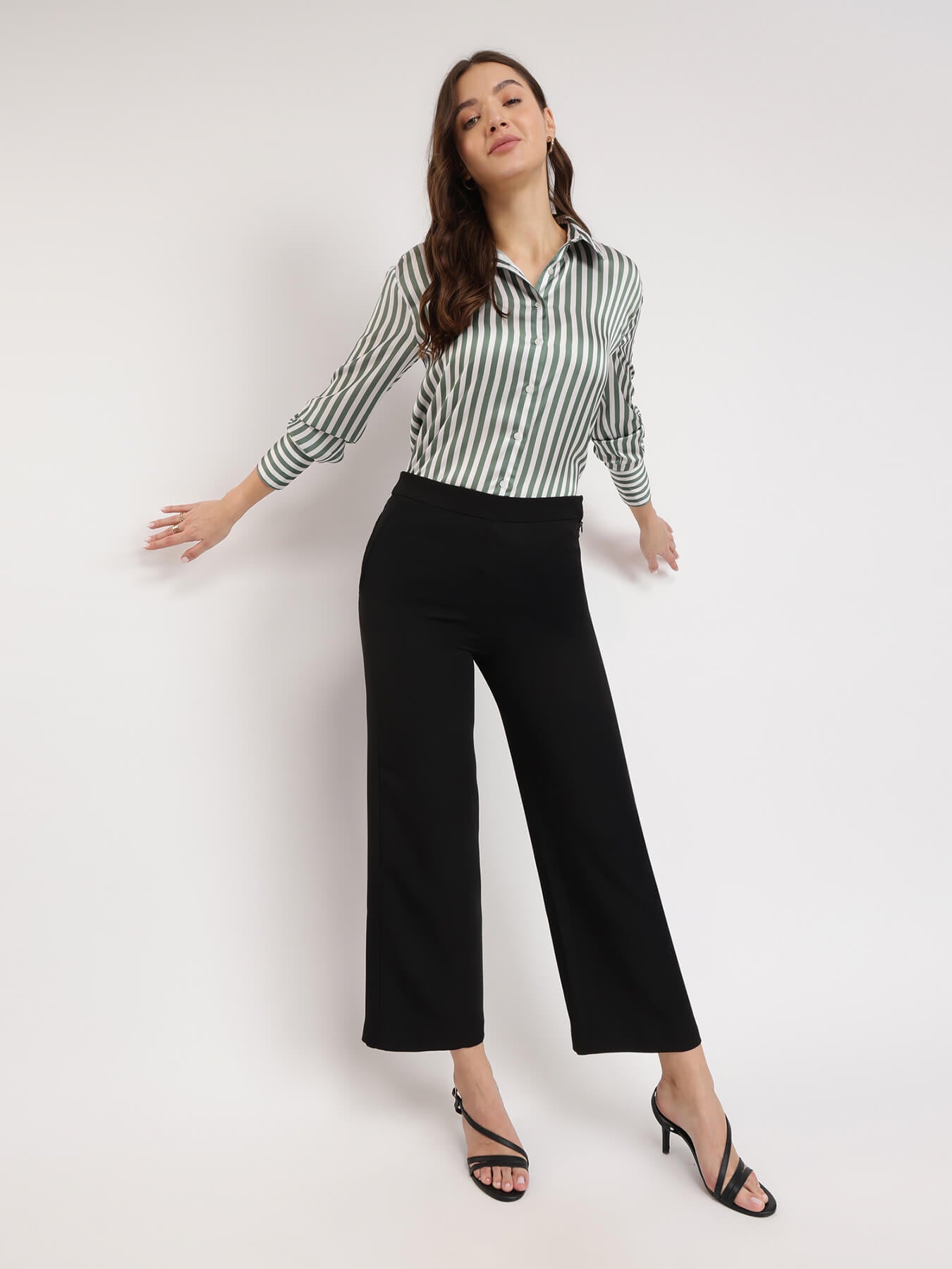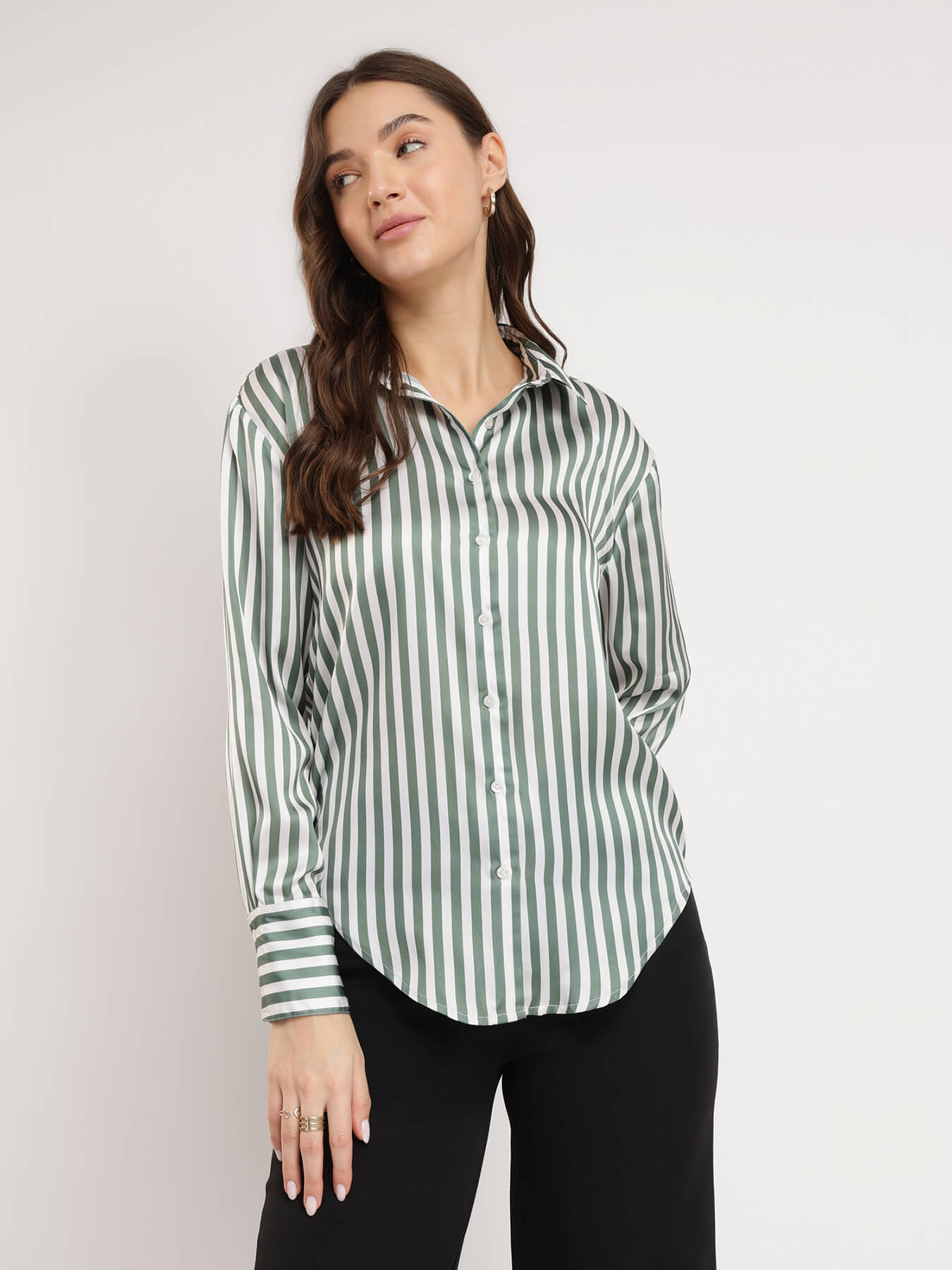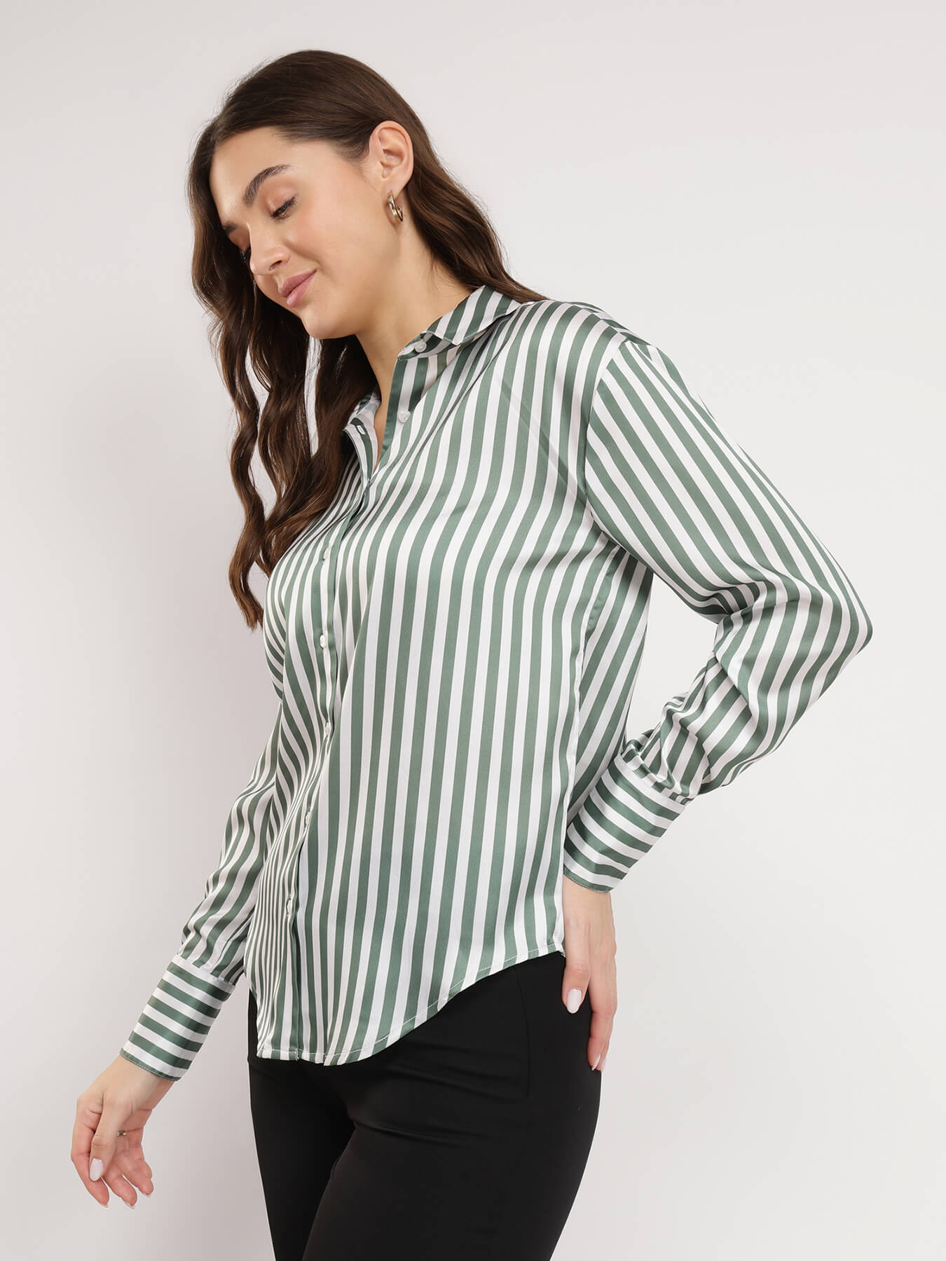 Satin Striped Shirt - Olive