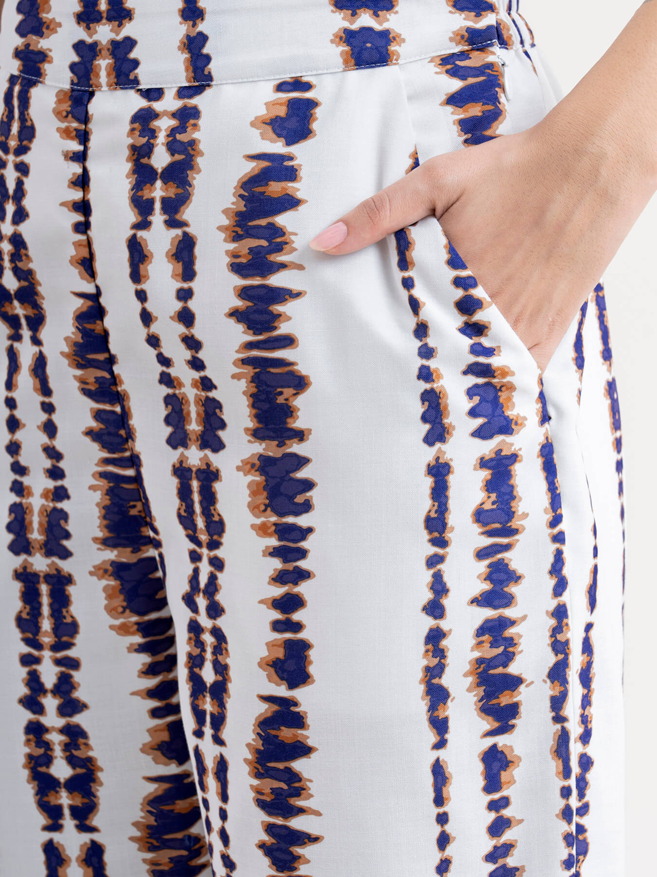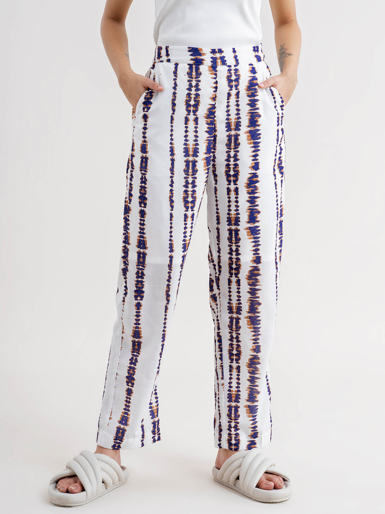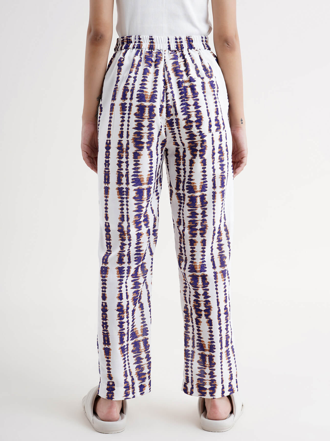Shibori Print Drawstring Trousers - White & Blue