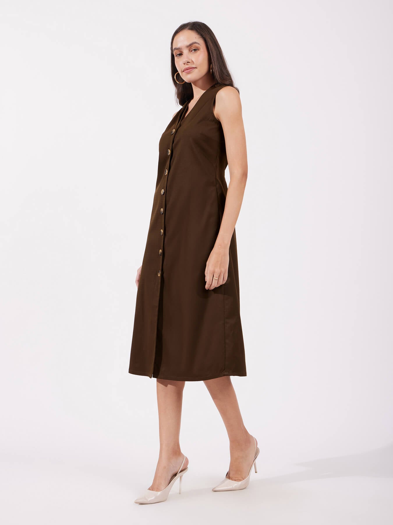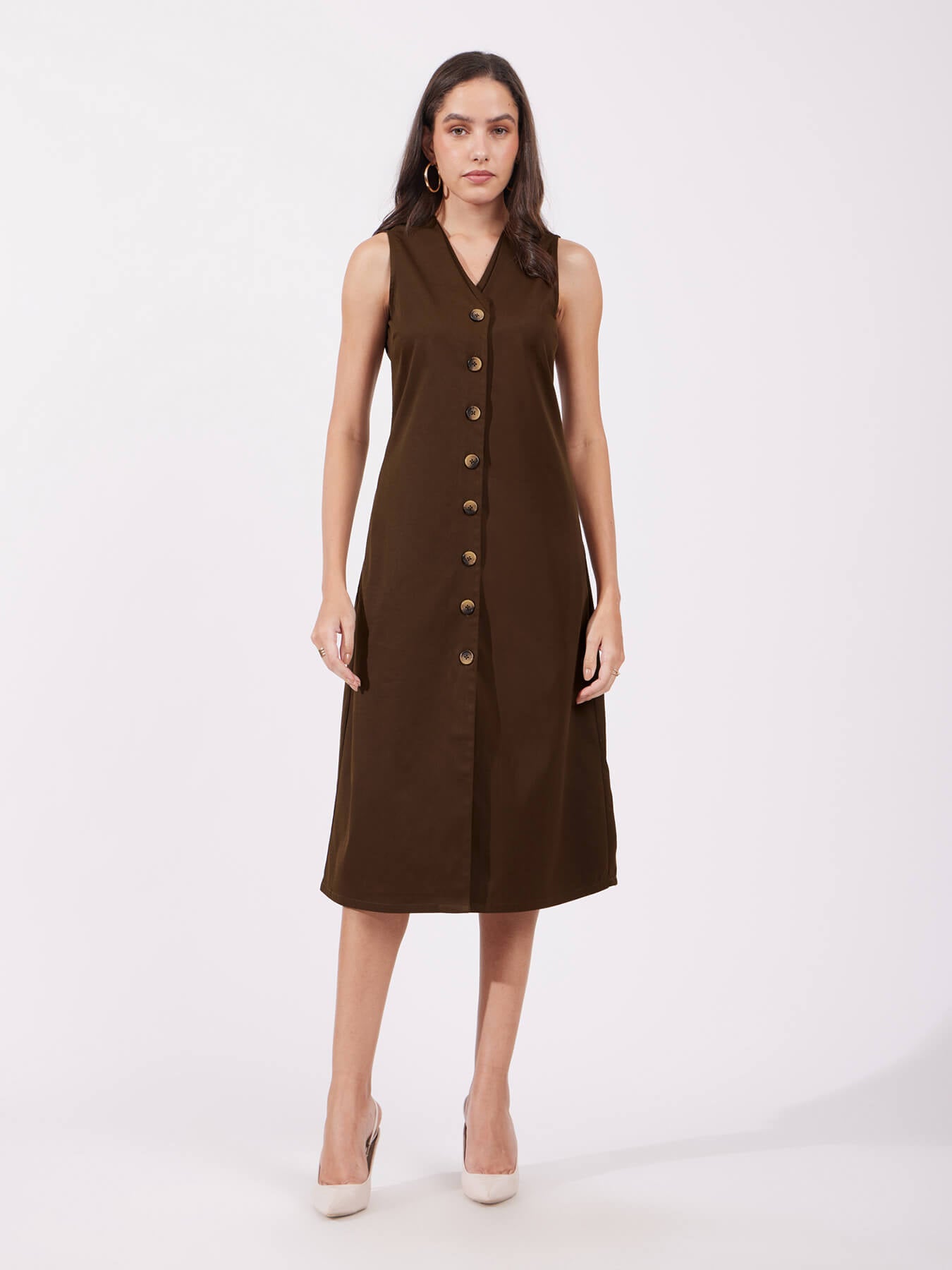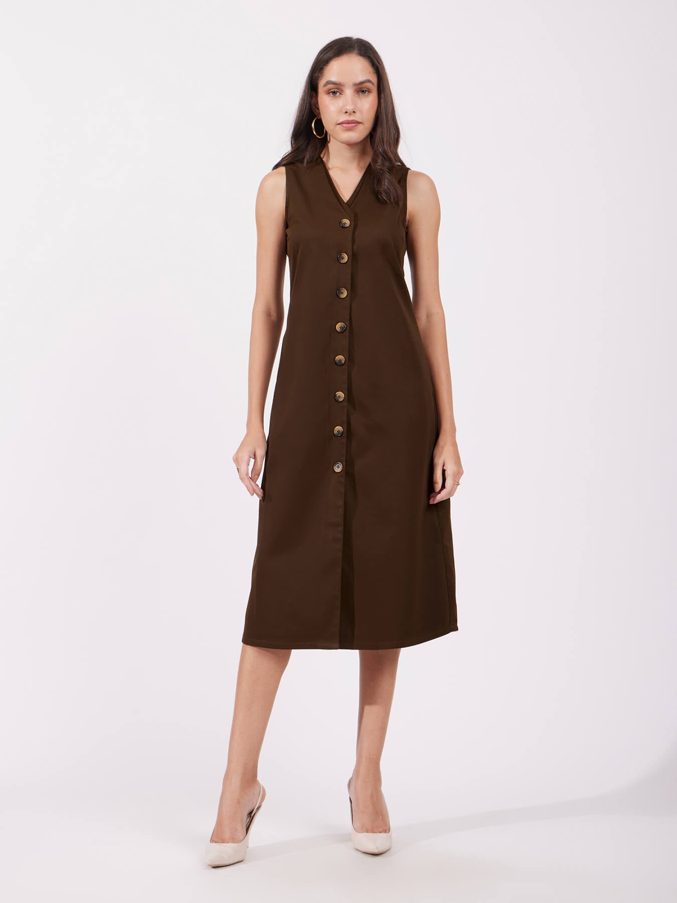 Shift Midi Dress - Brown