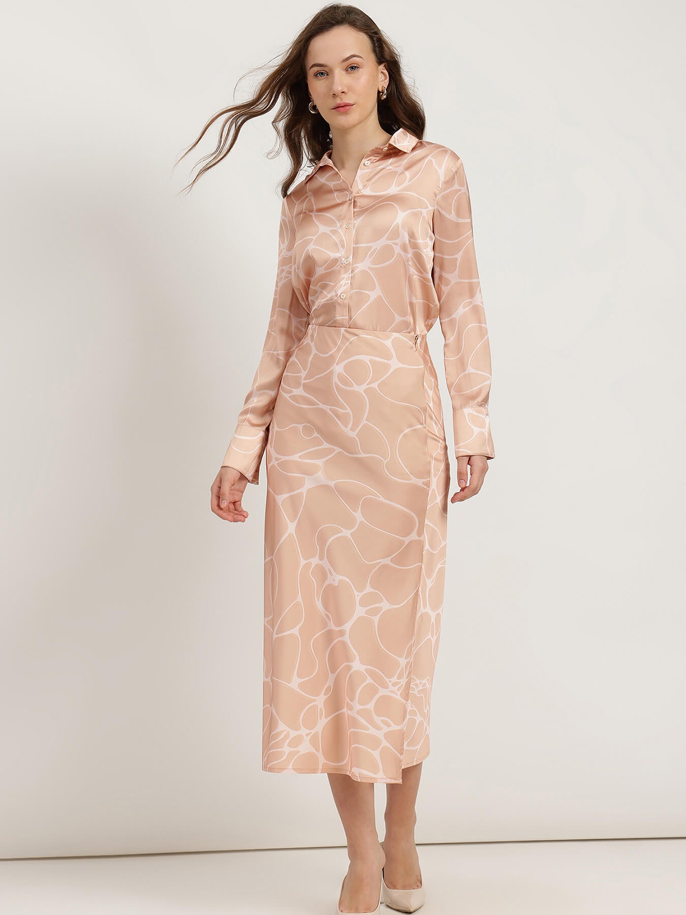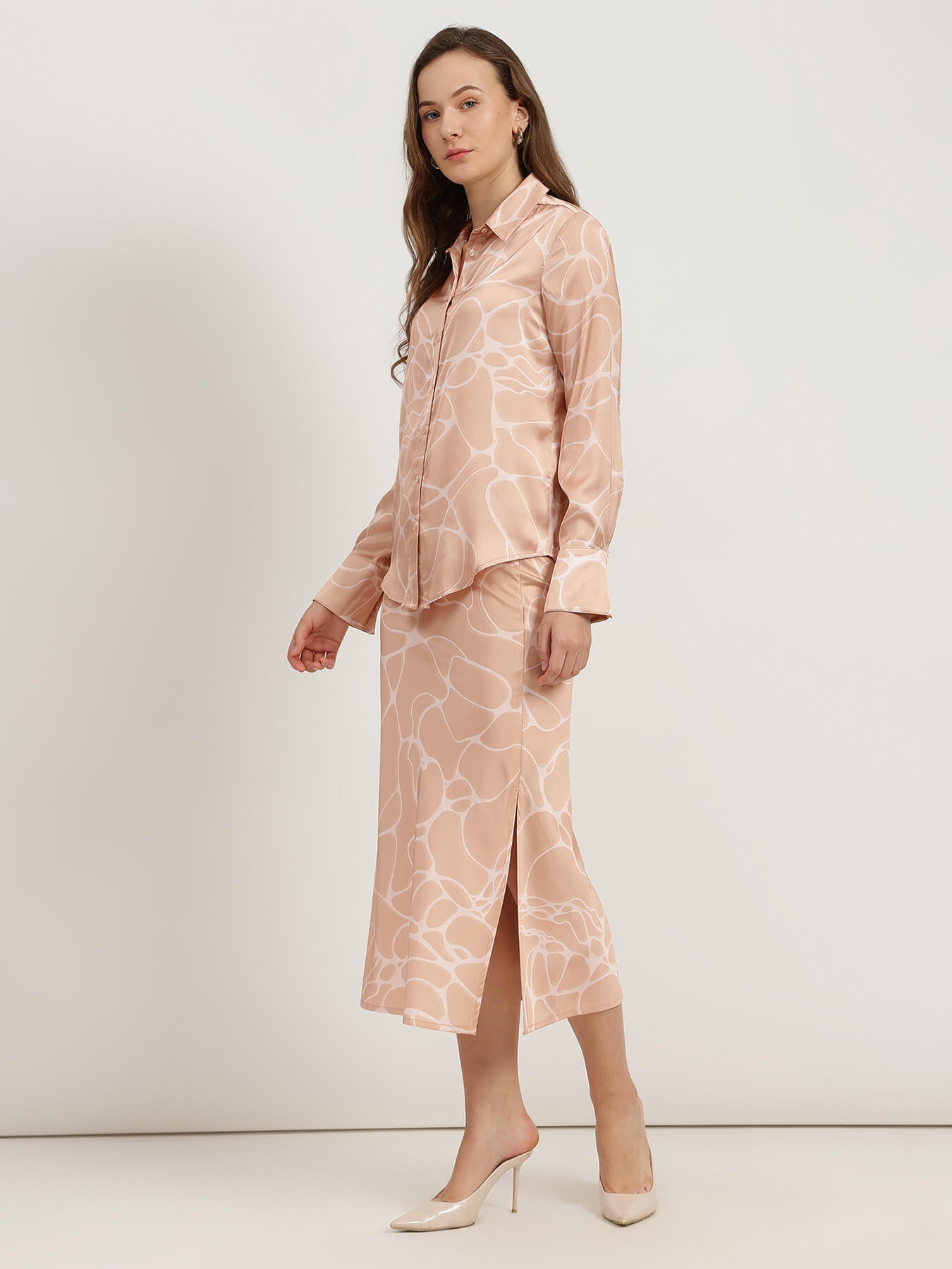 Shirt and A-Line Skirt Coord - Peach