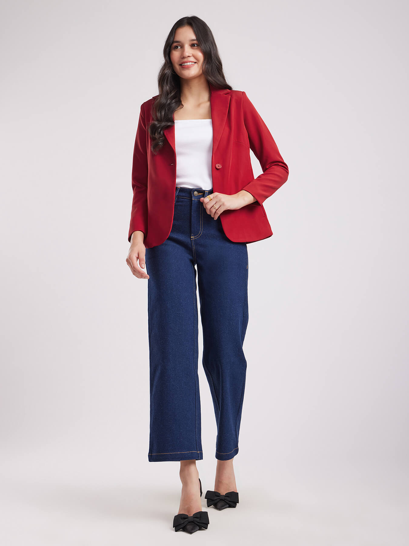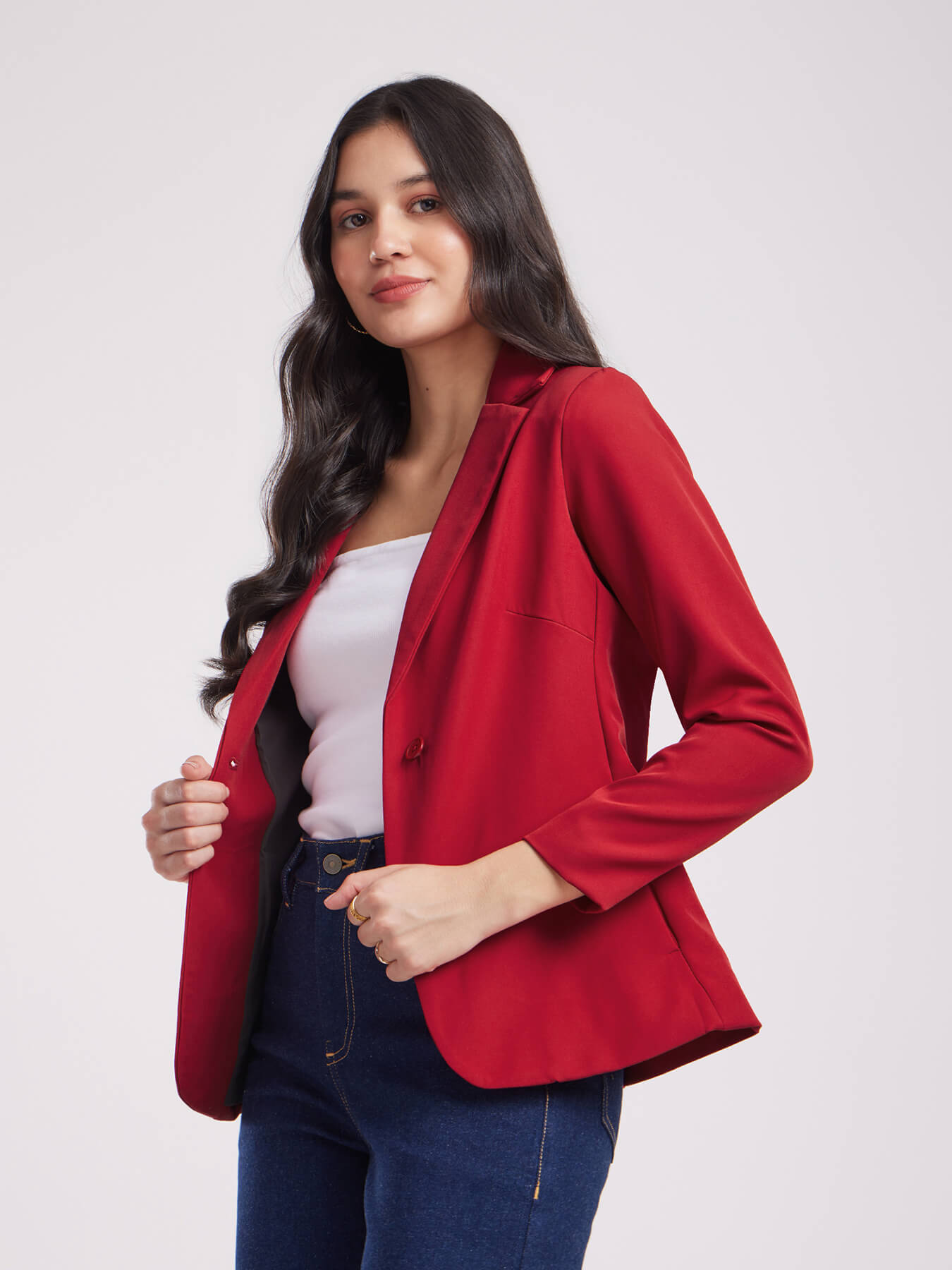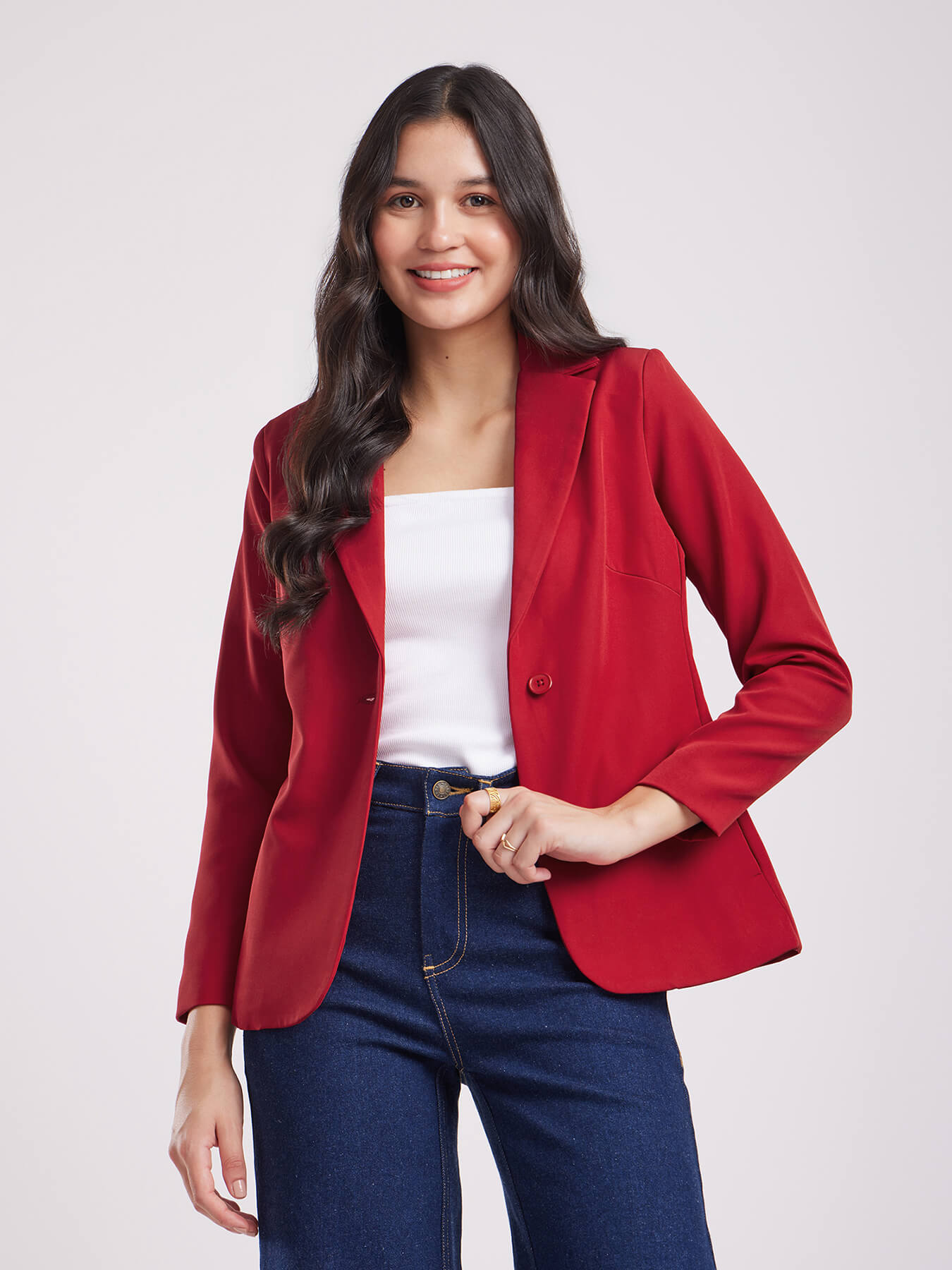 Single Breasted Blazer - Red