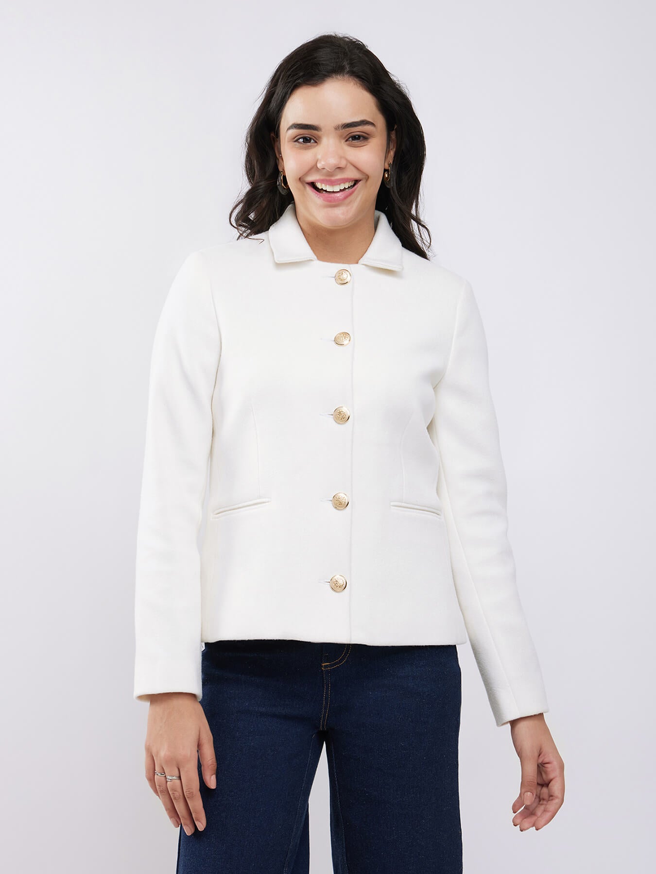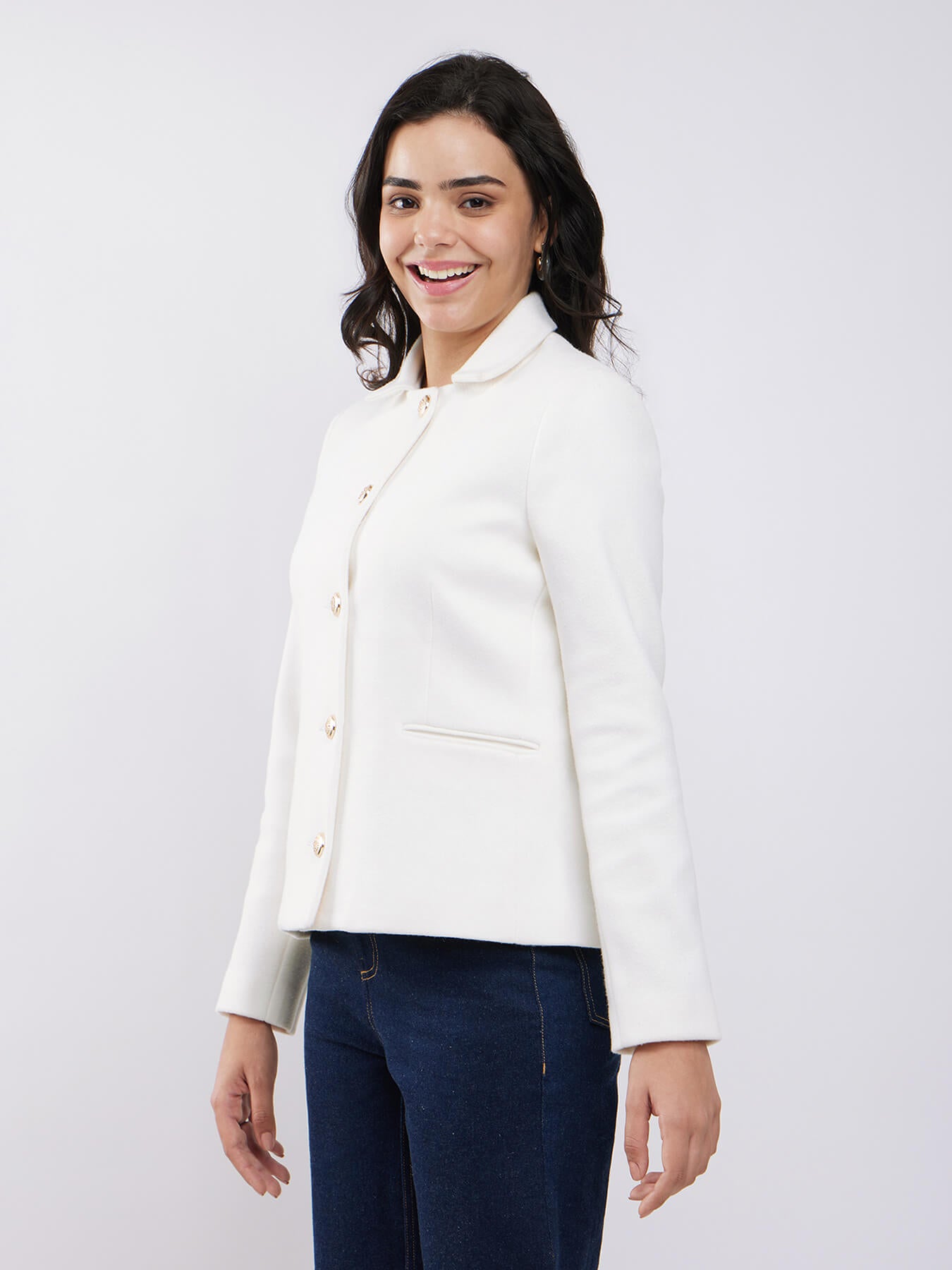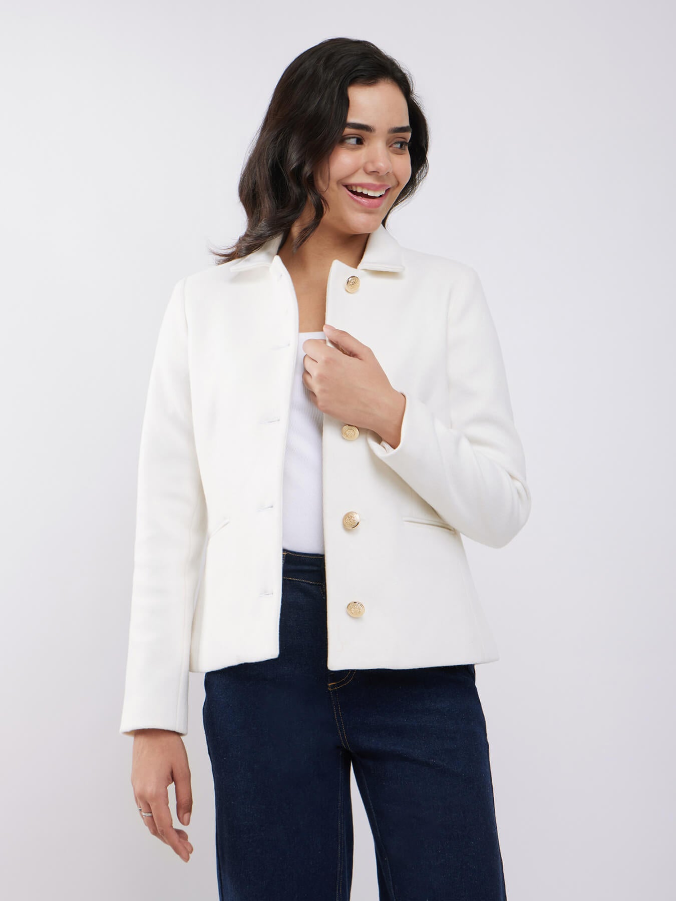 Short Felted Lined Jacket - Off White