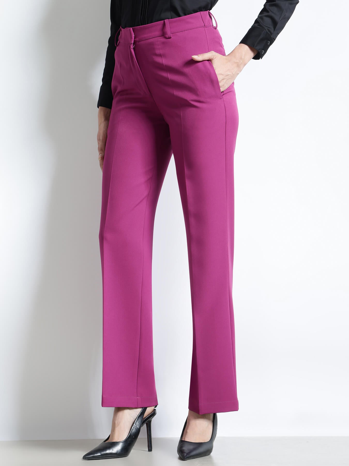 Straight Fit Trousers - Magenta