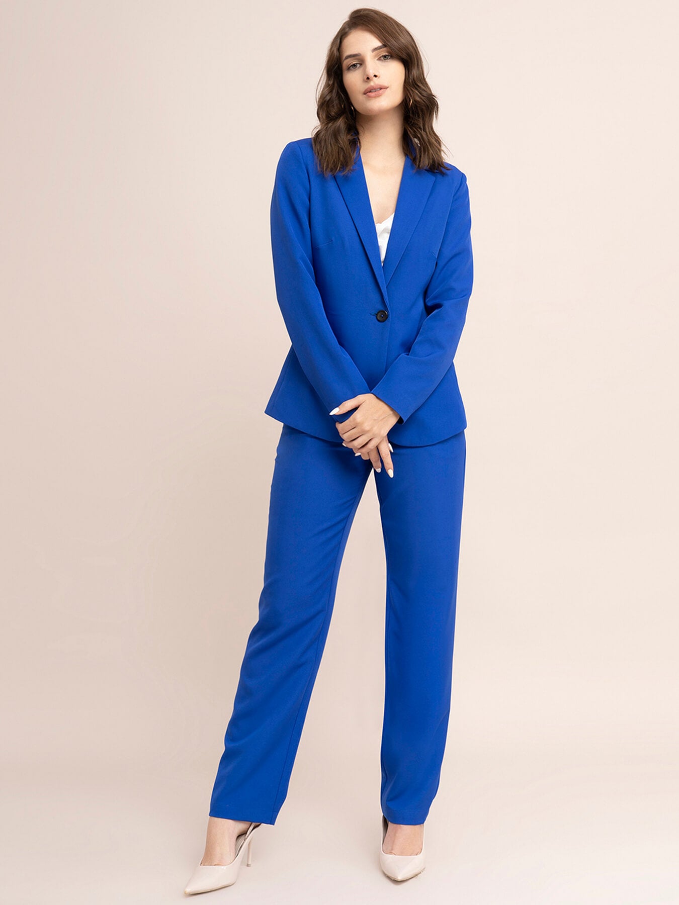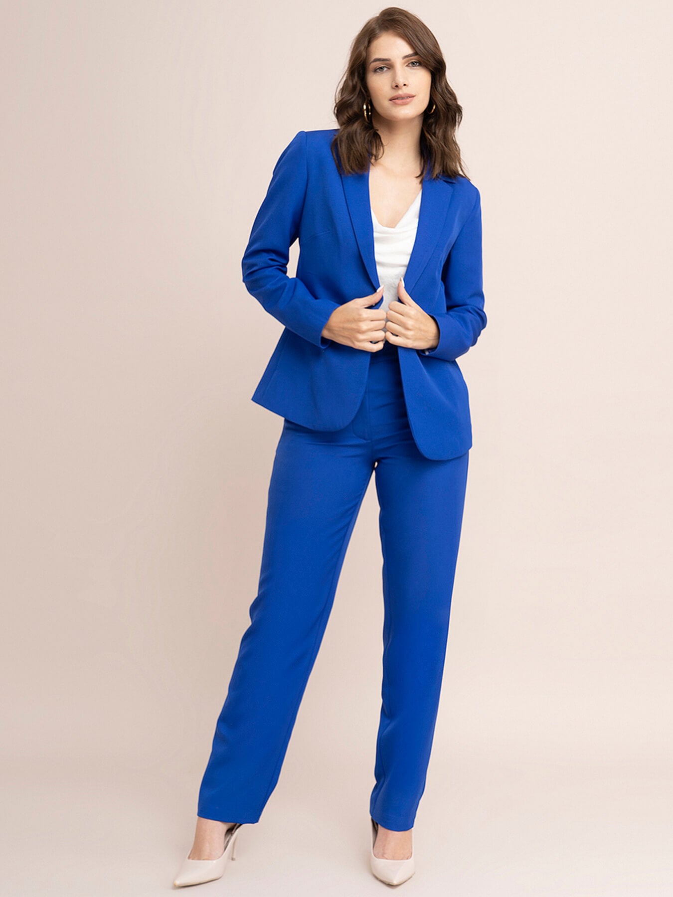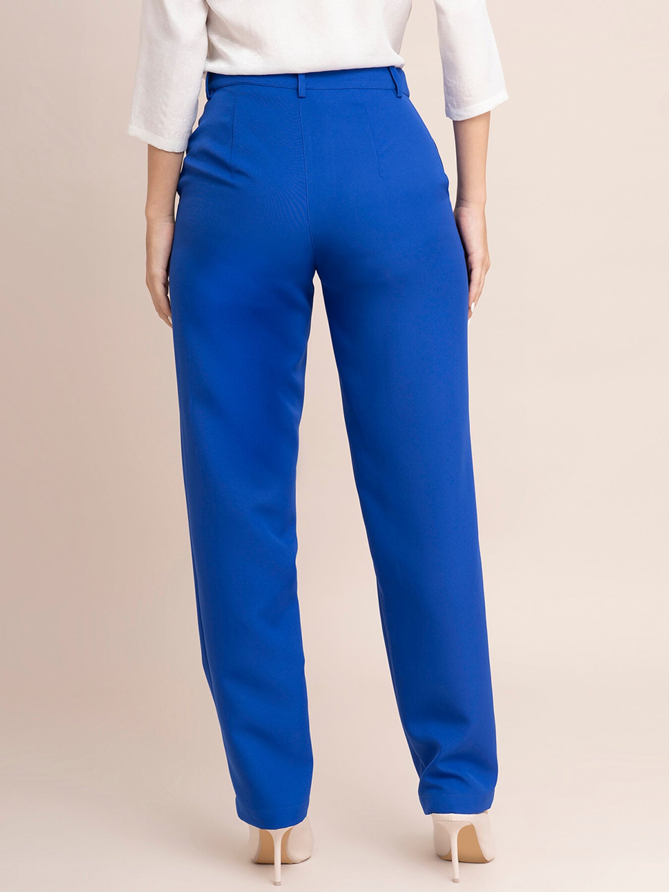 These royal blue straight-fit solid trousers have regular length and mid-rise waist. Made from Polyester Lycra, it is soft and comfortable to wear.