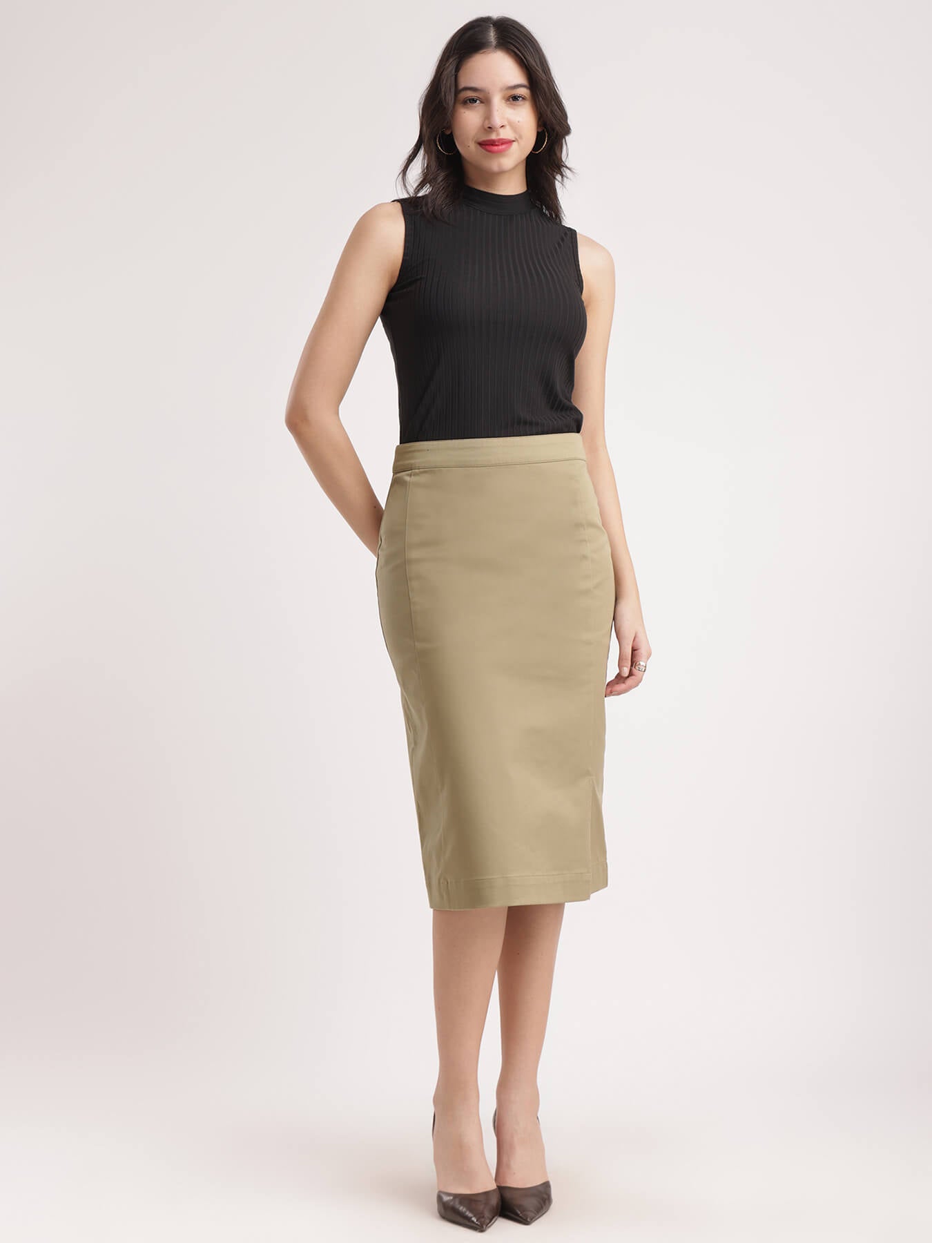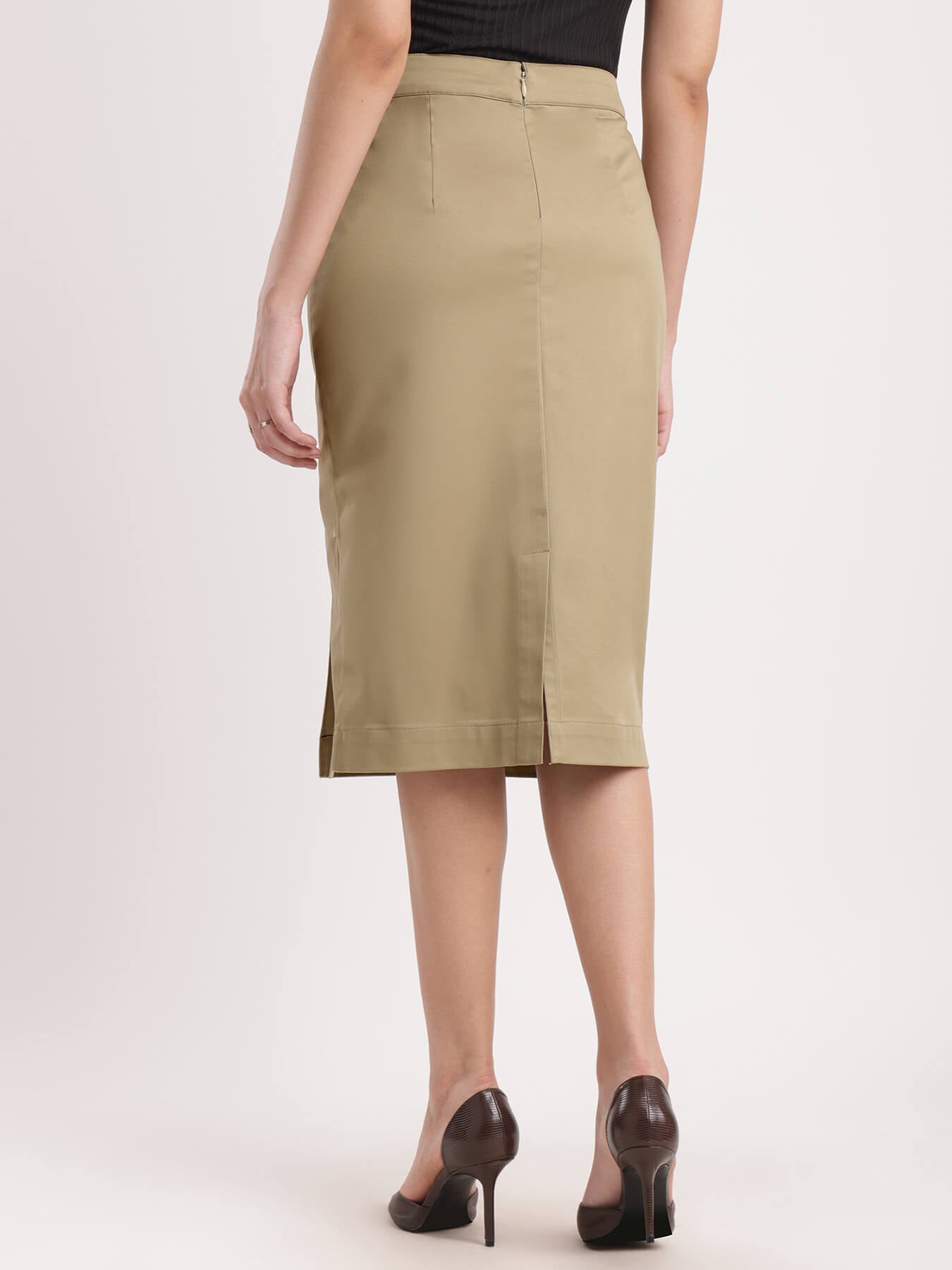 Stretchable Pencil Skirt - Beige