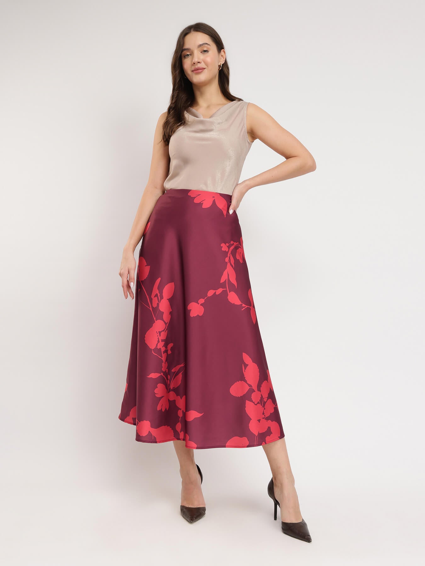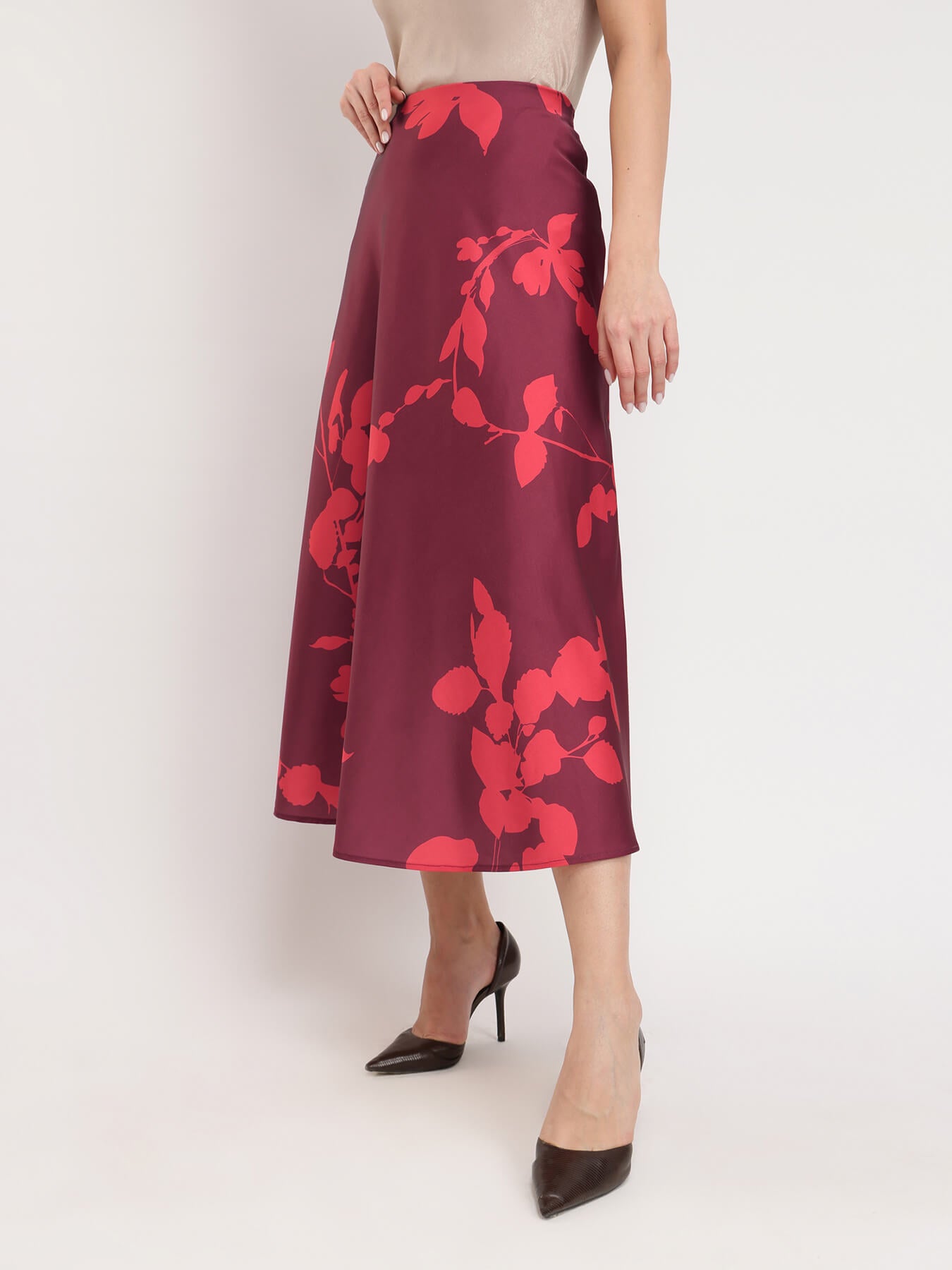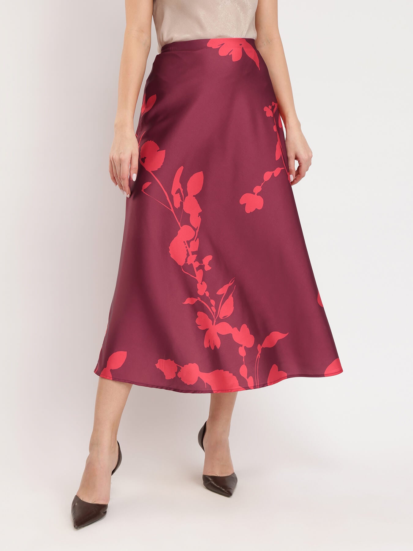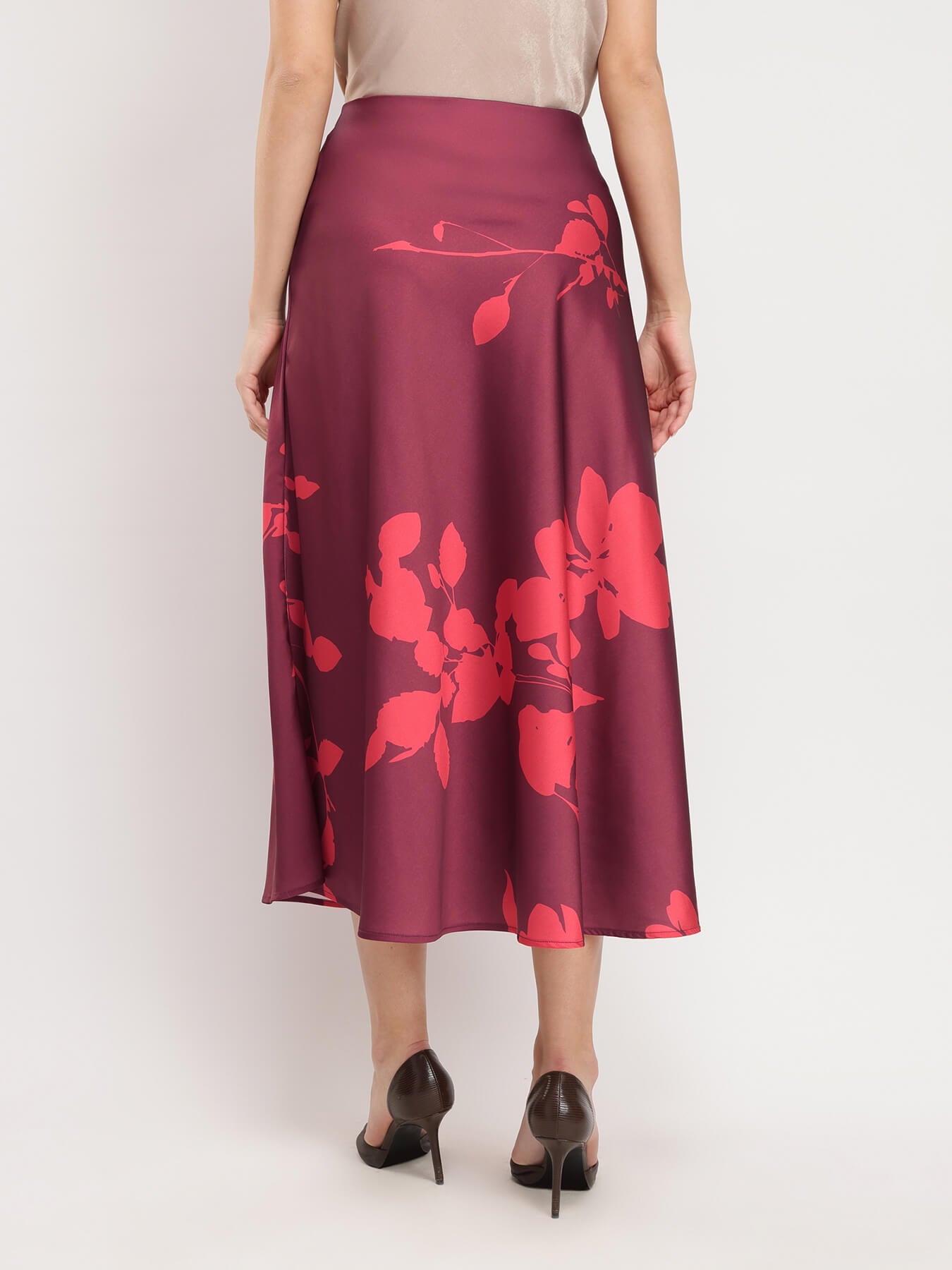 Stretchable Satin A-line Skirt - Maroon
