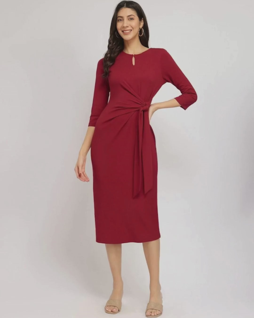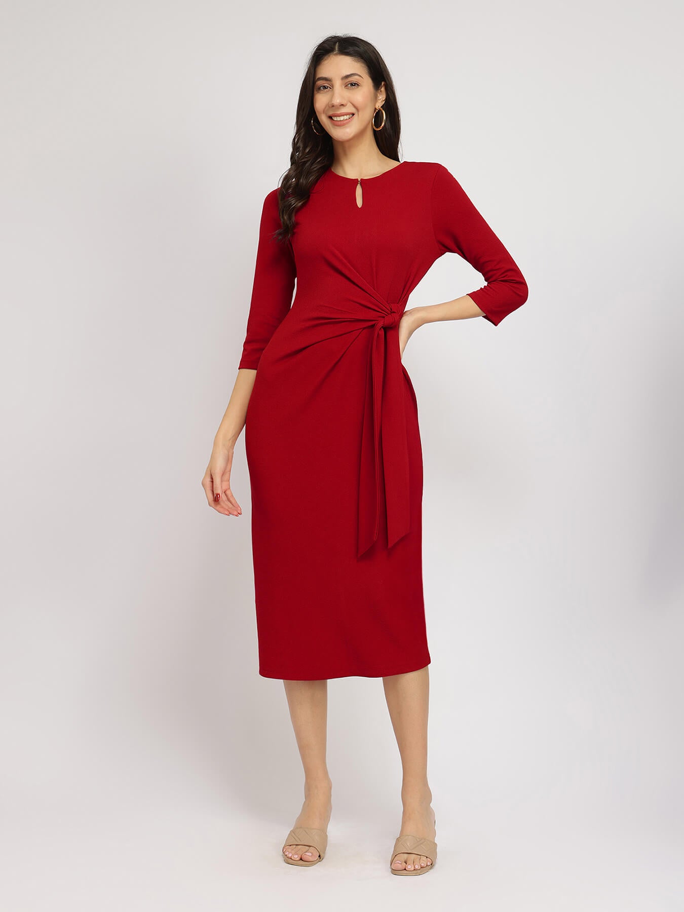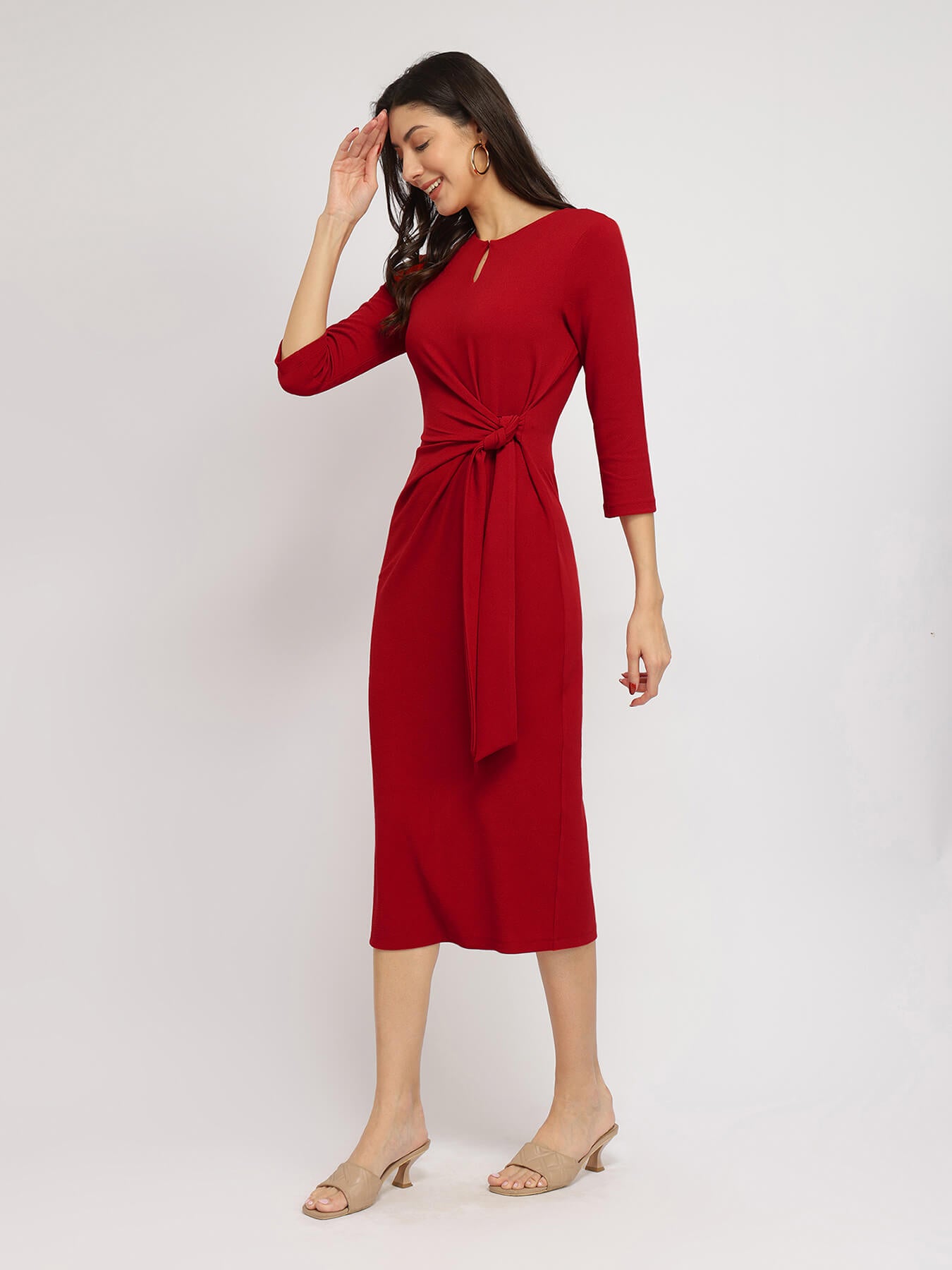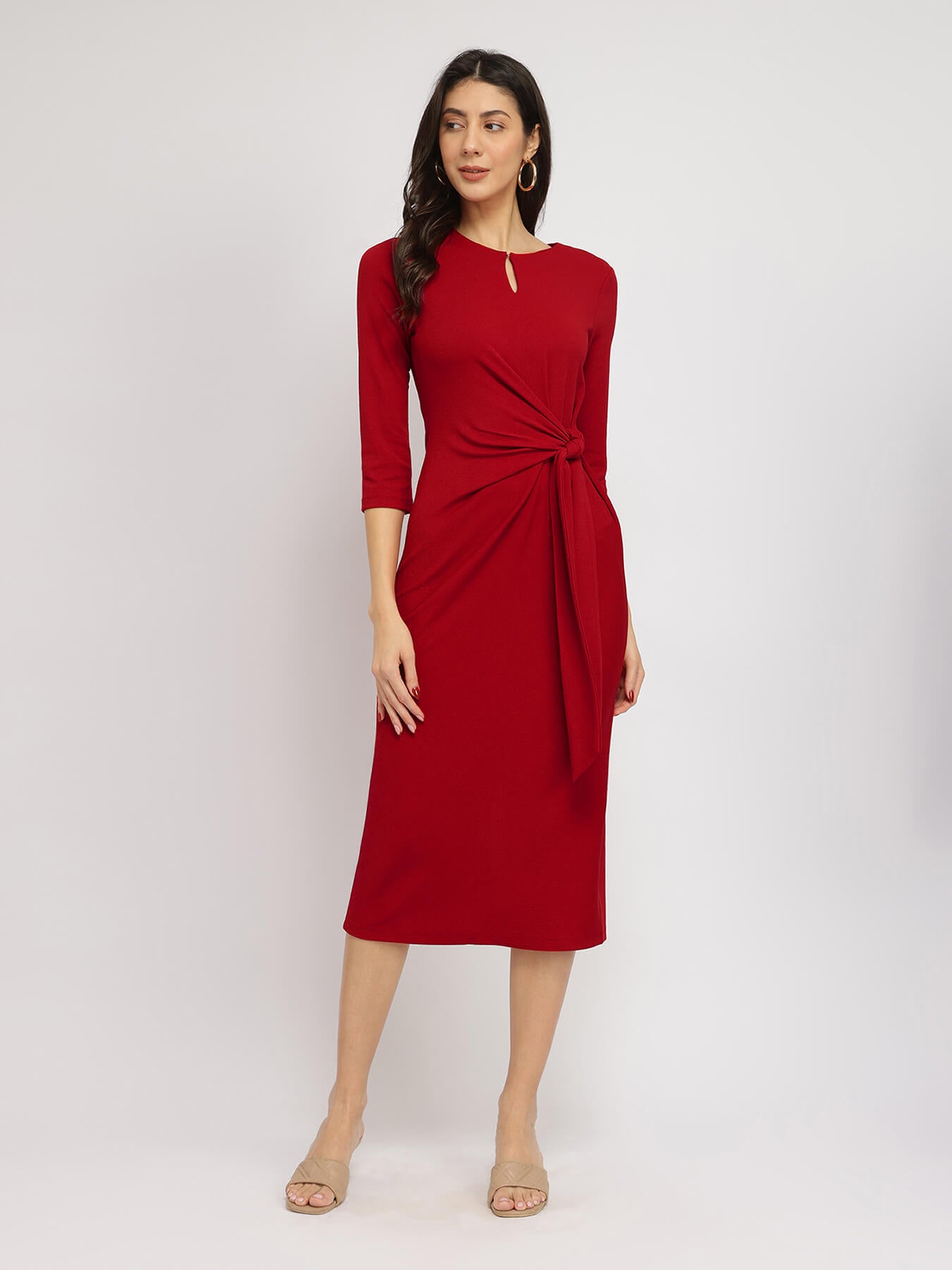 Stretchable Tie-Up Dress - Red