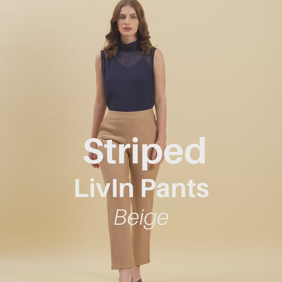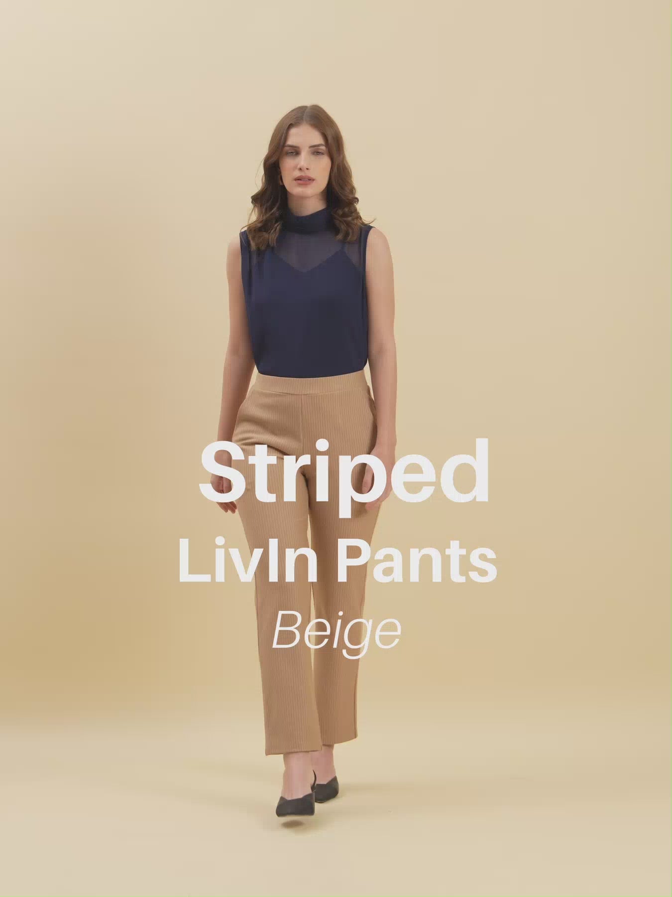 These beige striped LivIn Pants are bootcut, have regular length and mid-rise waist. Made from Nylon Rayon, these are breathable, super stretchable, super soft and comfortable to wear.