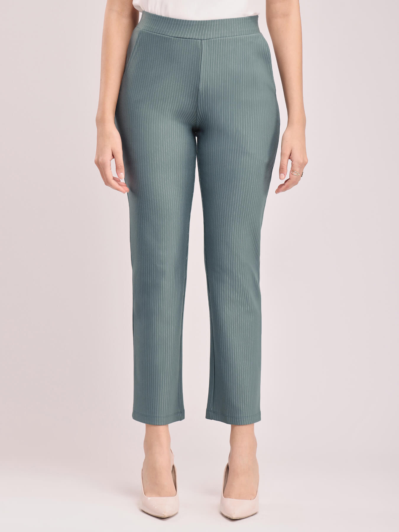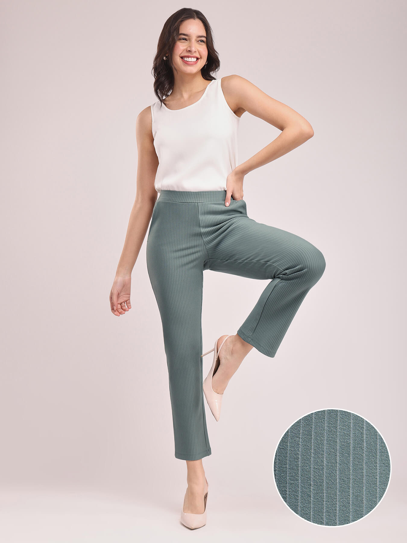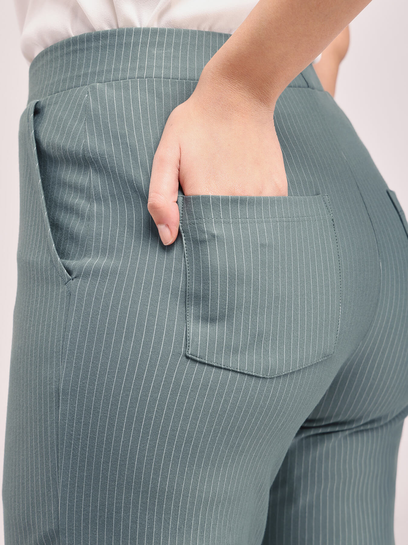 These sap green striped LivIn Pants are bootcut, have regular length and mid-rise waist. Made from Nylon Rayon, these are breathable, super stretchable, super soft and comfortable to wear.