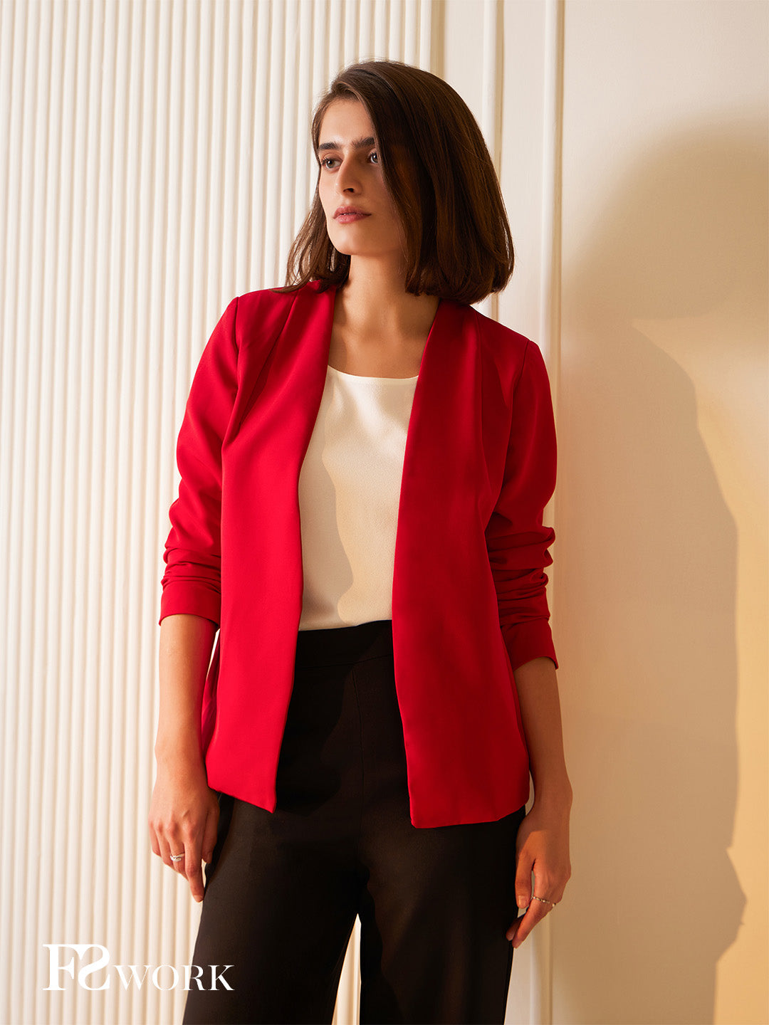 Ditch your boring jacket for this stylish red jacket. It has a hook for closure, full sleeves and functional pockets. Made from Cotton Lycra, it is stretchable, breathable and has a natural feel.