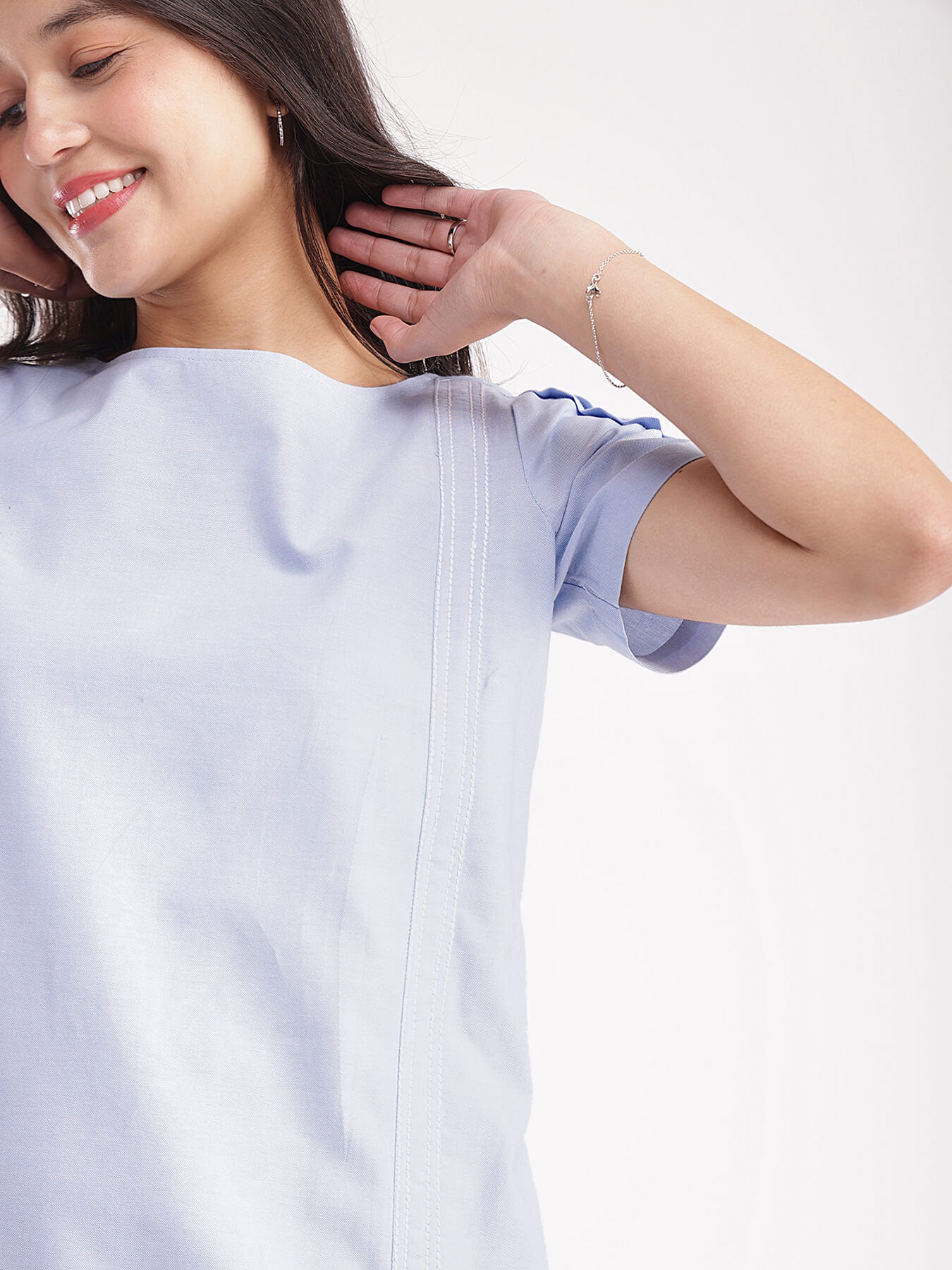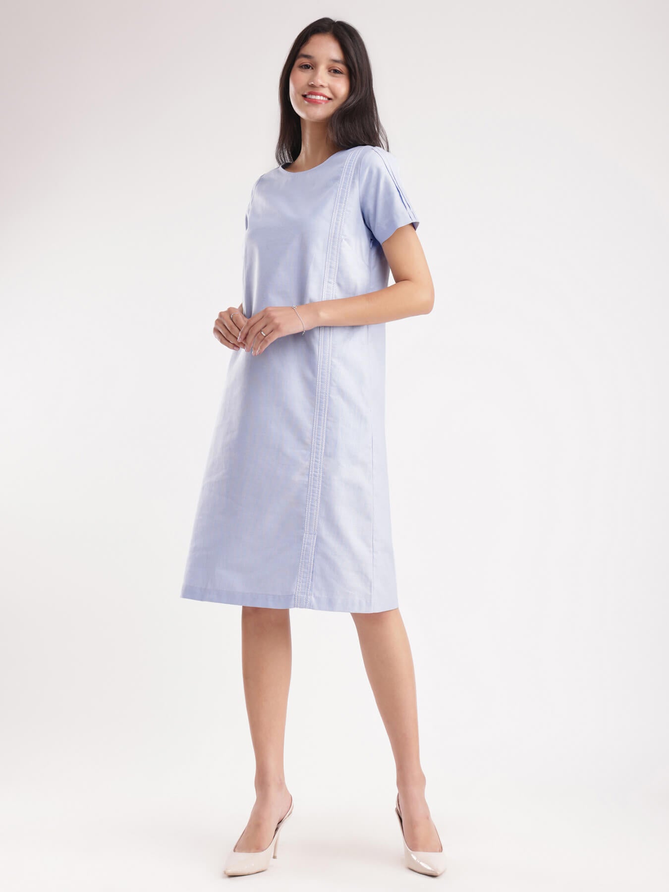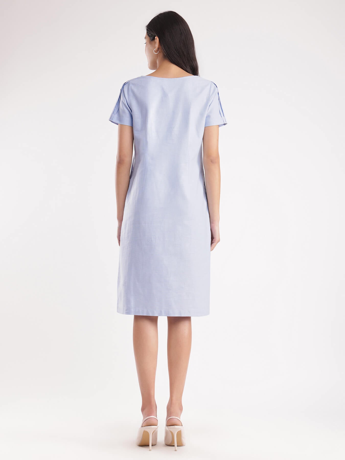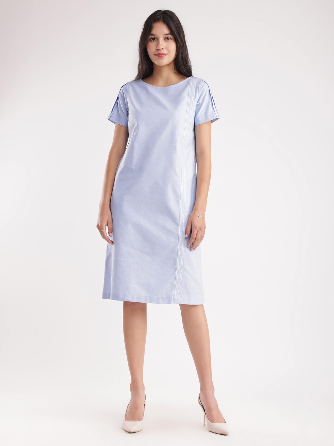 Textured Cotton Shift Dress - Blue