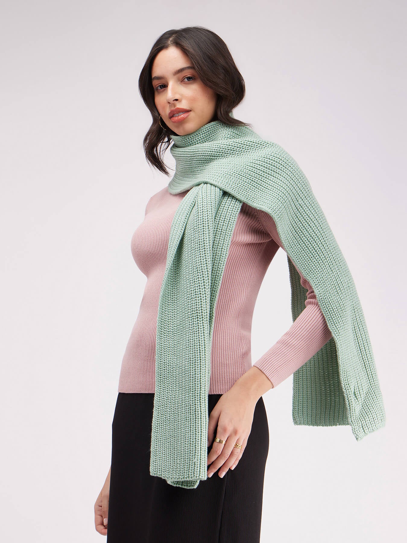 This sap green textured muffler has a shaker weave and is a perfect addition to your winter wardrobe. Made from Acrylic, it is luxurious, ultra-soft, breathable, durable and stretchable with a flawless drape.