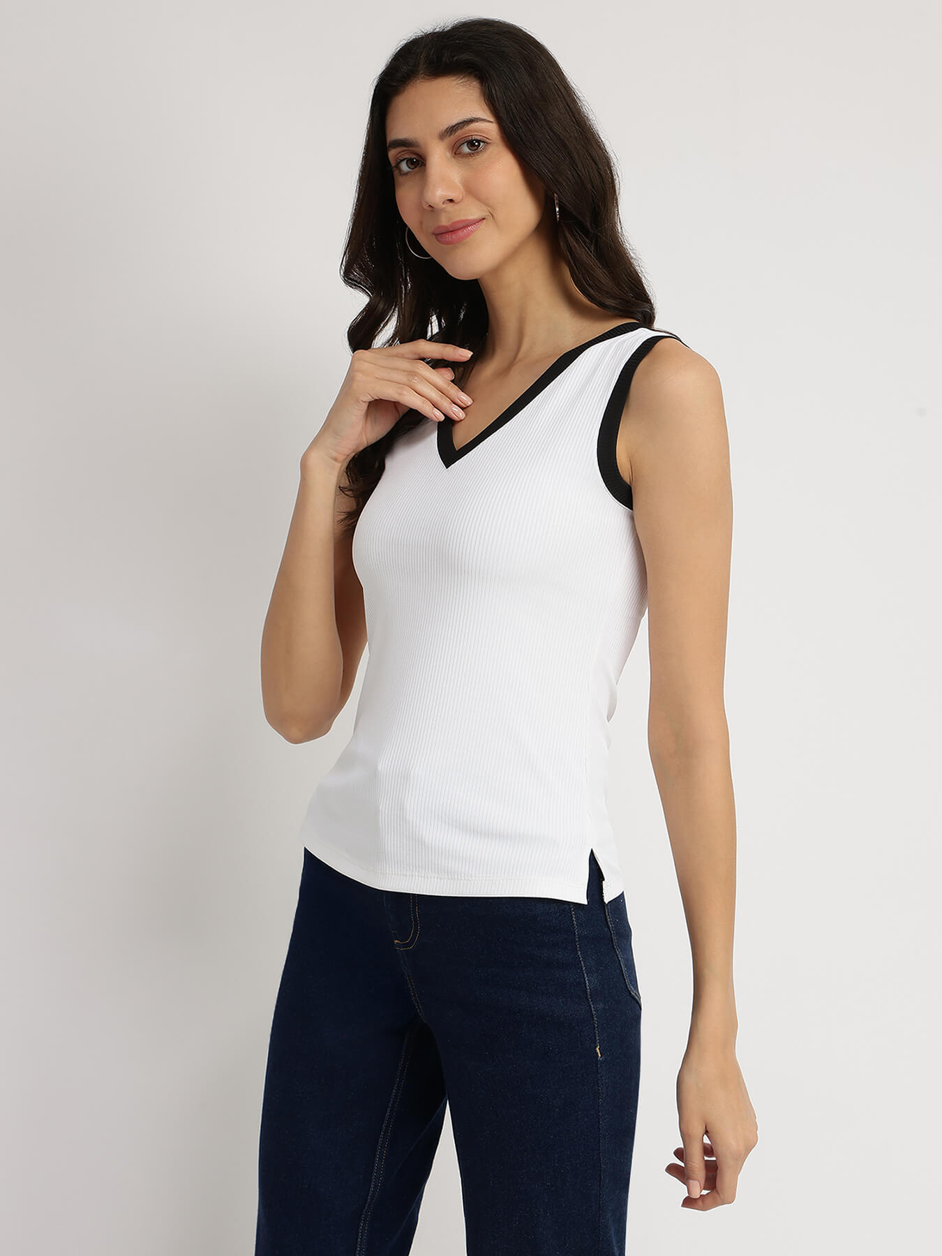 V-Neck Knit Top - White