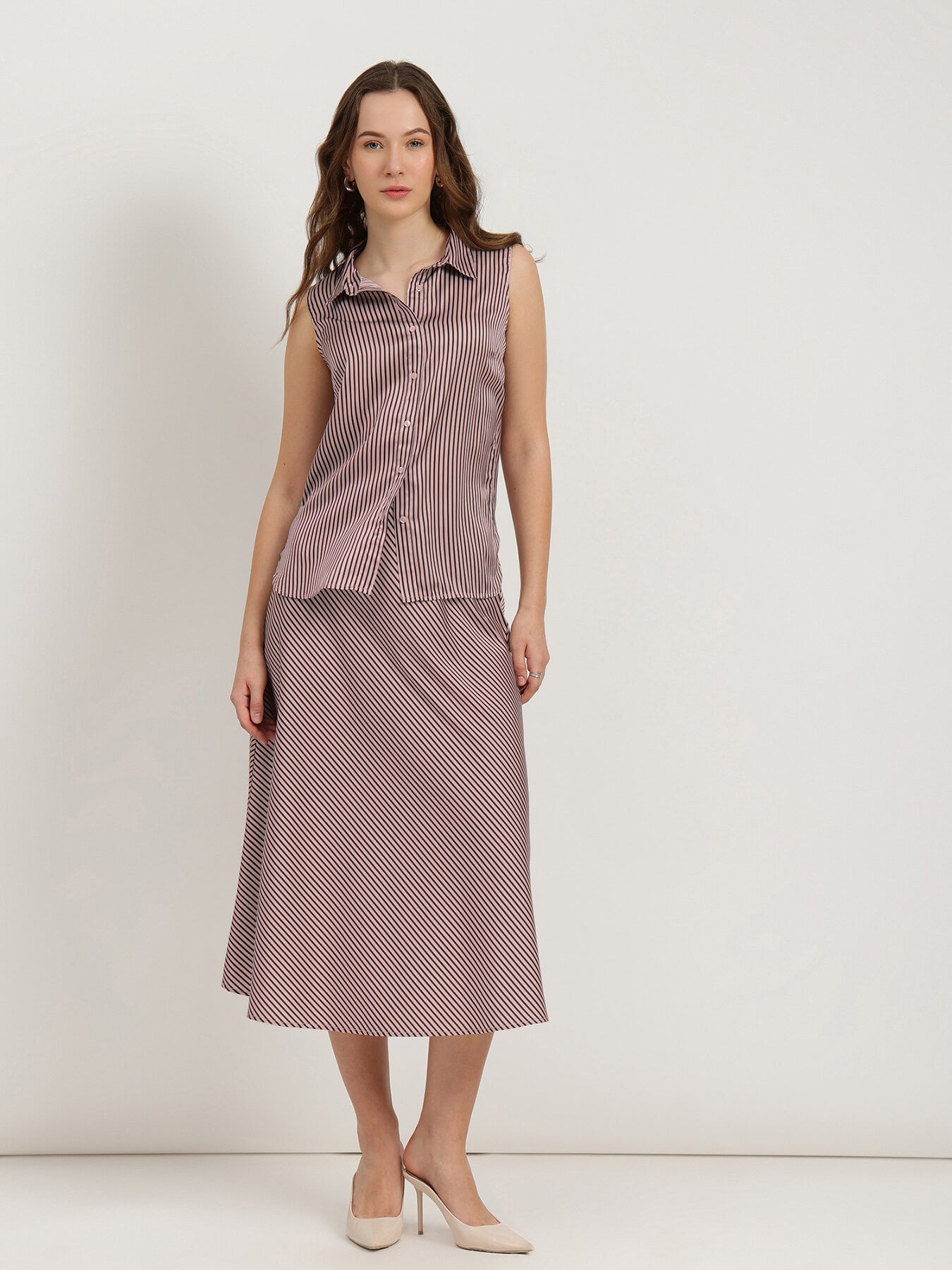 Shirt and Flared Skirt Co-ord - Dusty Pink