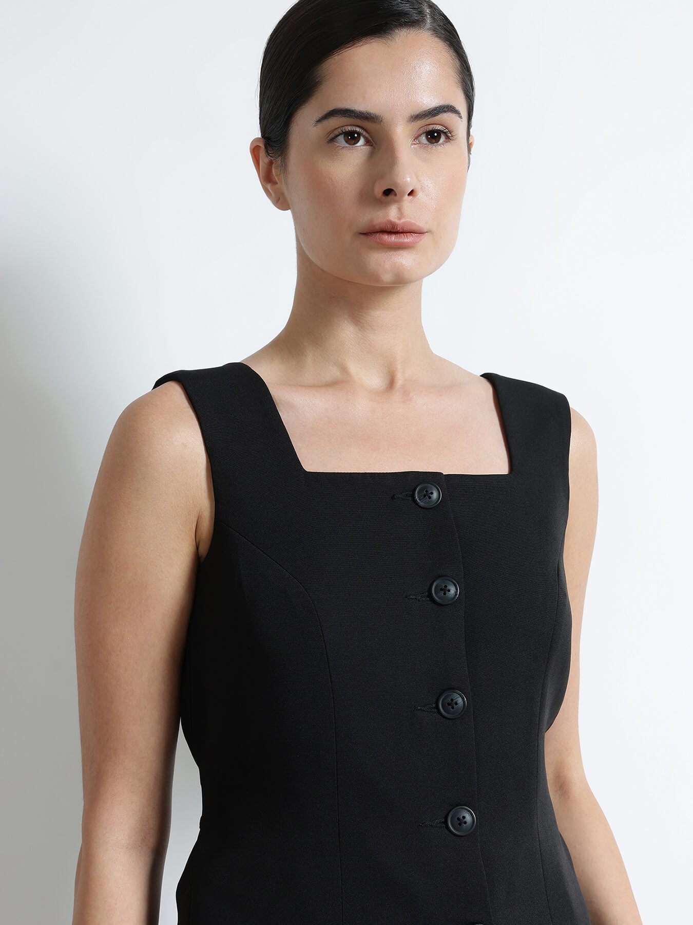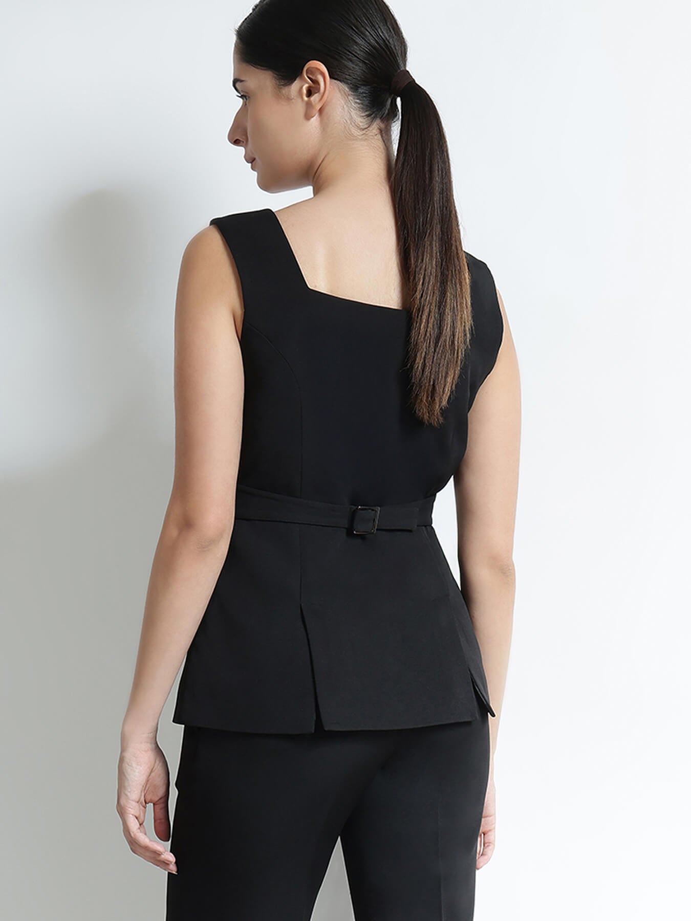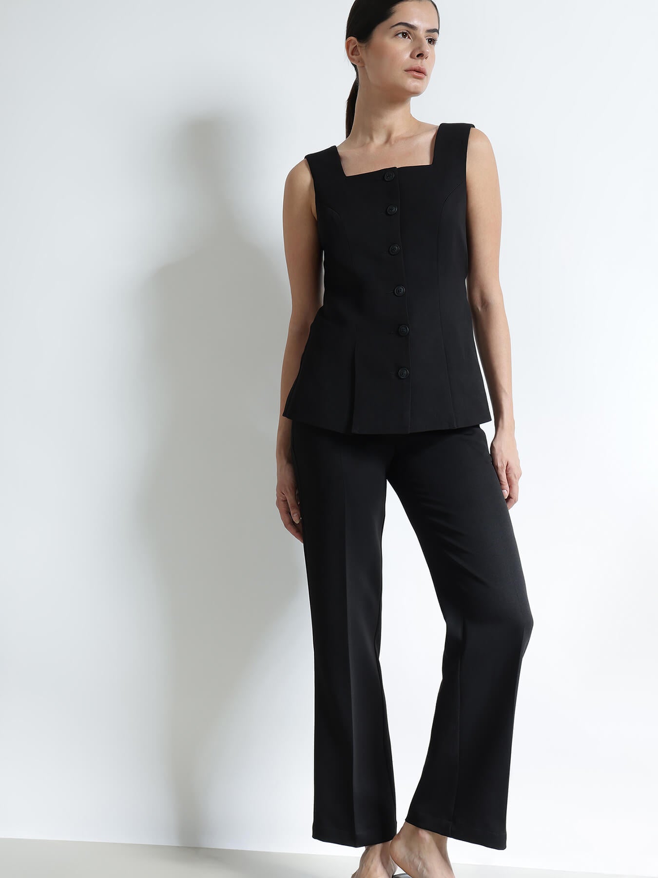 Waistcoat and Straight Fit Trousers Co-ord - Black