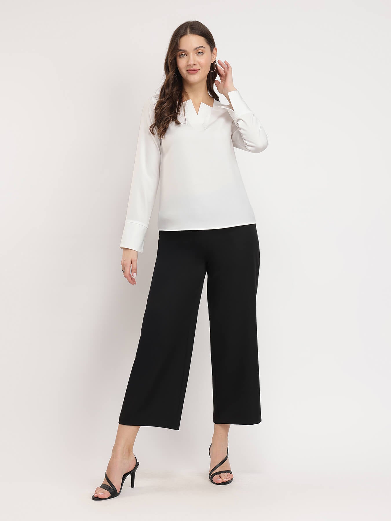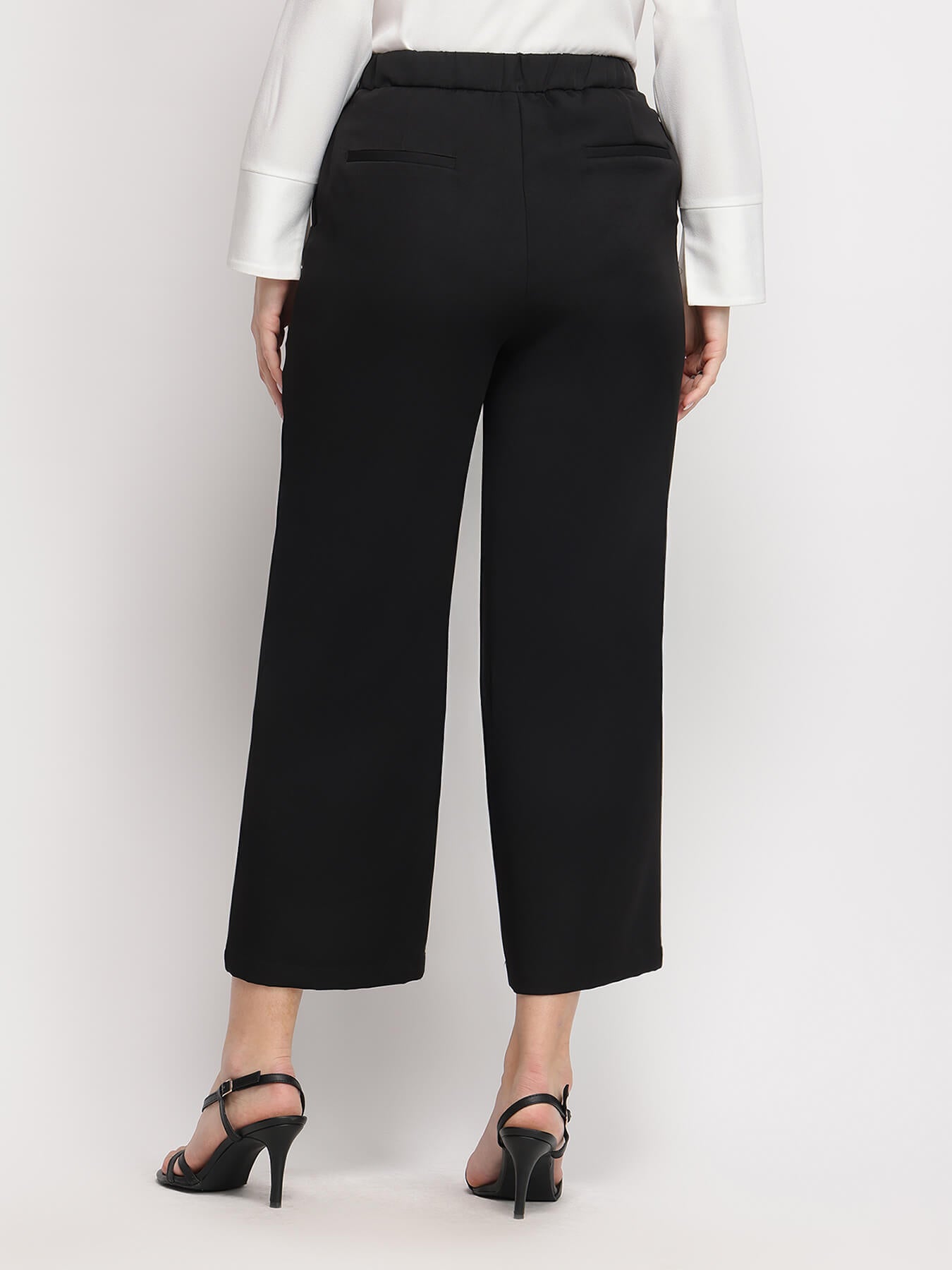 Wide Leg Cropped Trousers - Black