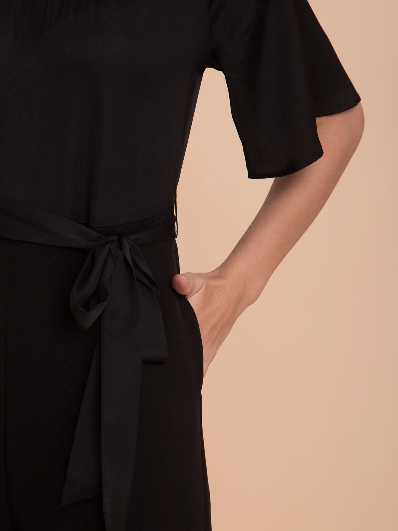 Wide Legged Bell Sleeves Jumpsuit - Black